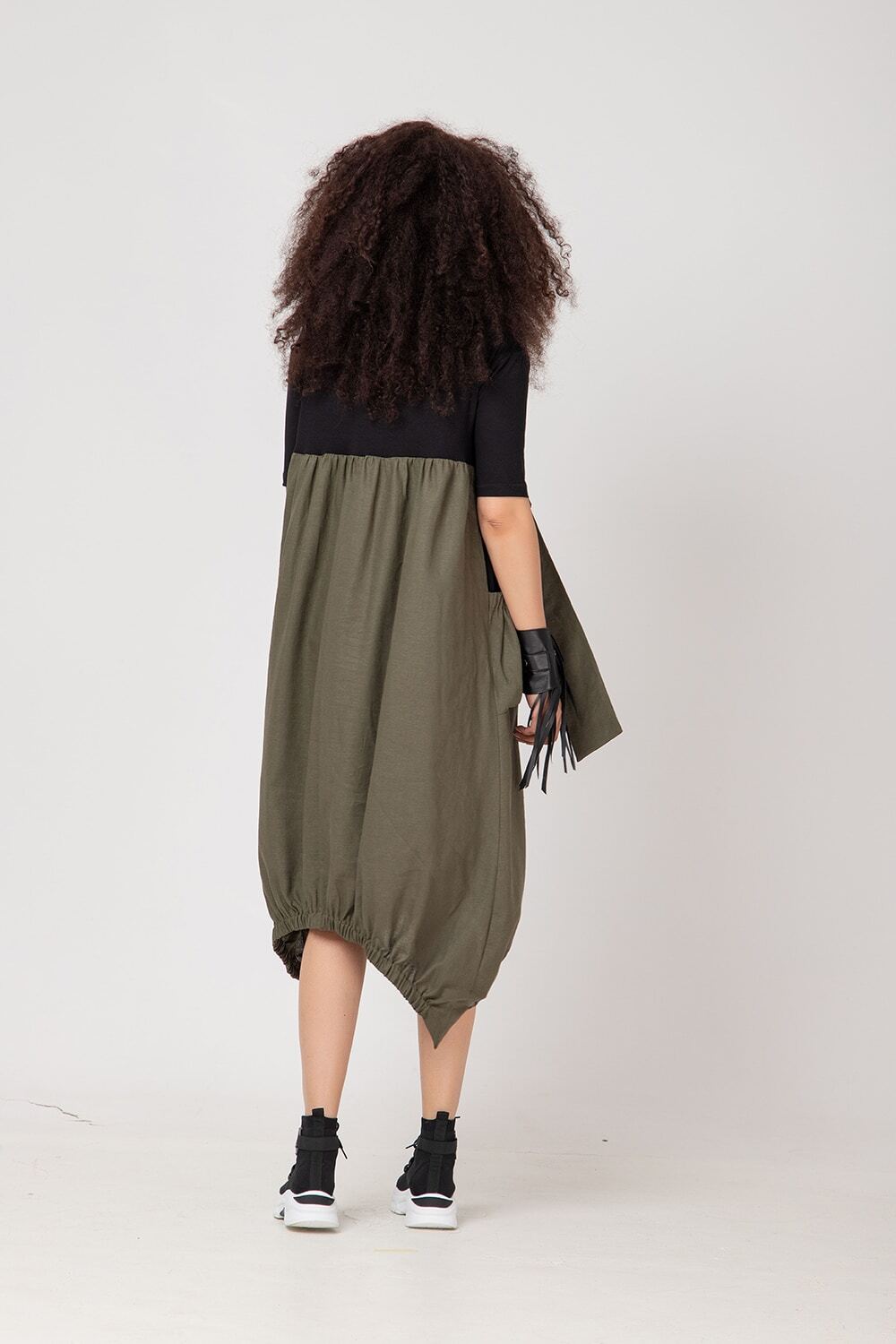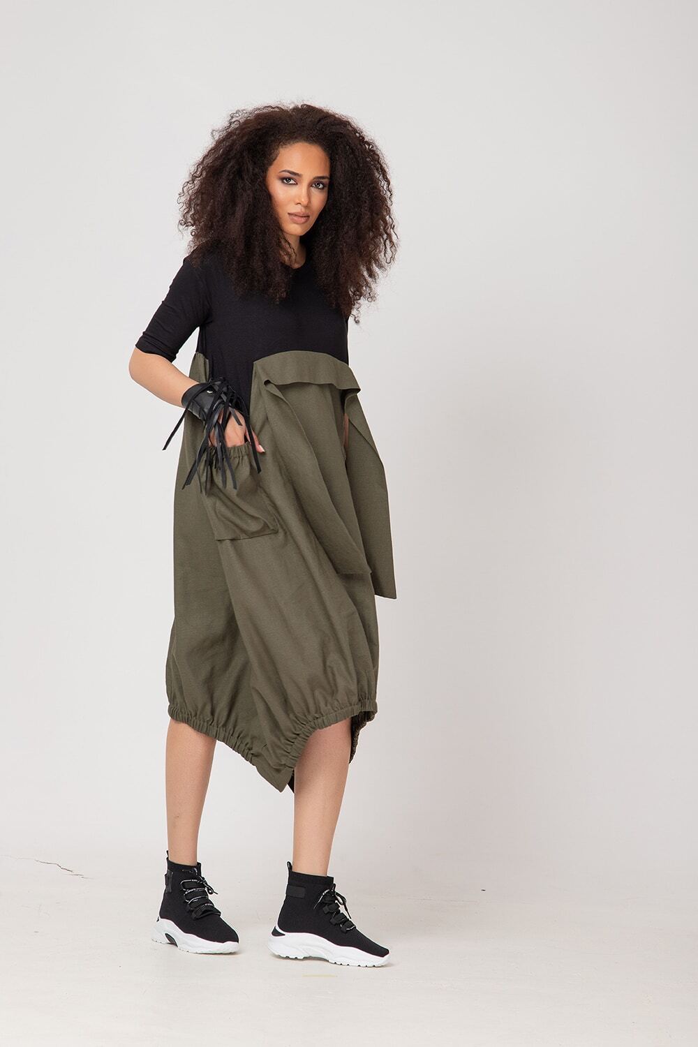 Unveil your unique fashion sense with our standout IT Dress – the embodiment of fresh design and sporty elegance. Dare to be different with this striking and edgy piece, tailored for those who appreciate a touch of individuality. The asymmetrical A-line silhouette adds a contemporary twist, while the loose scoop neckline exudes a sporty yet elegant vibe. Short-sleeved and below the bust, the wide strap belt adds a dash of chic, while elasticated deep front pockets provide both style and functionality. Draping side details and elasticated ends elevate the drama, making you the center of attention.