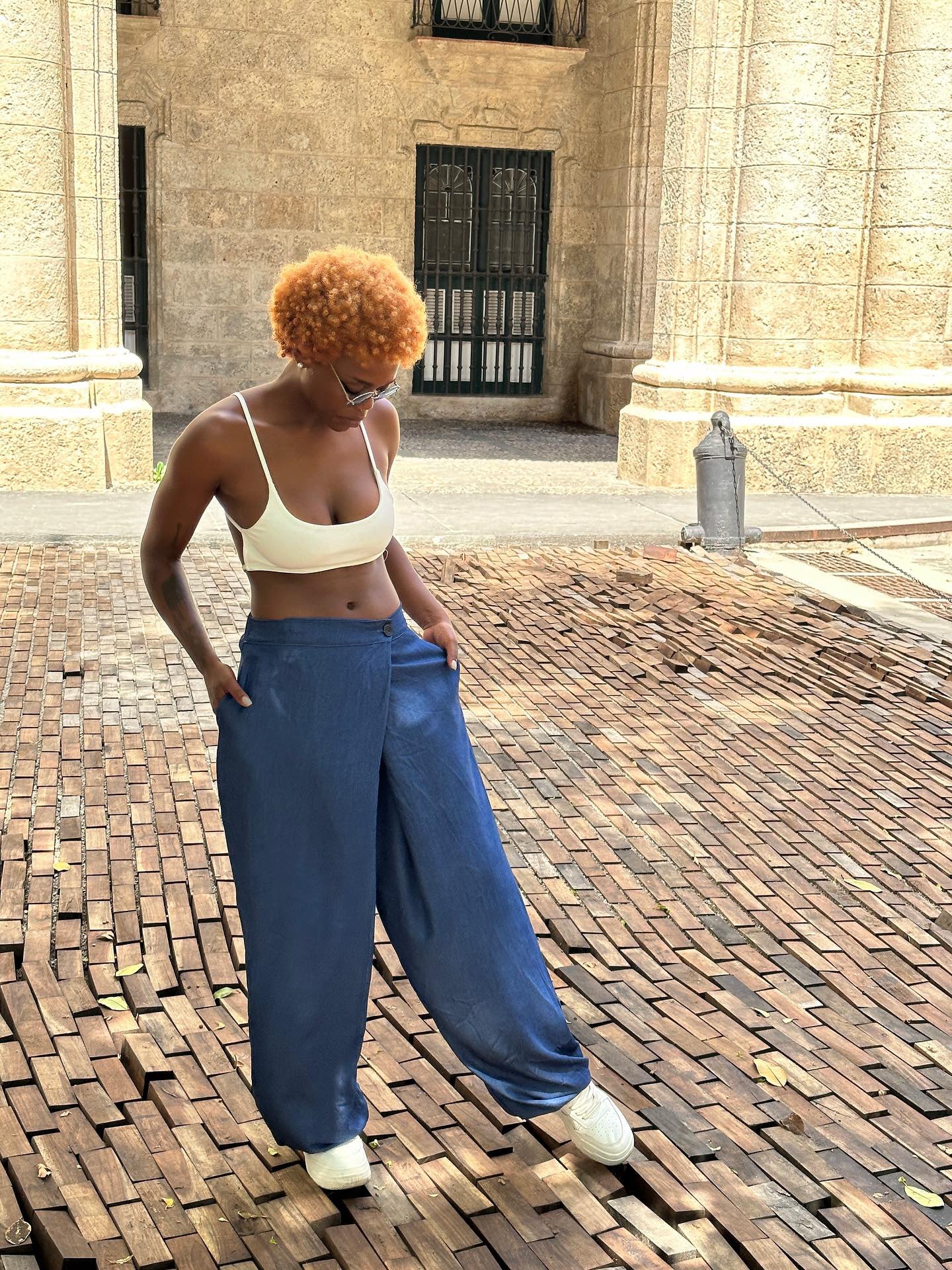 Elevate your wardrobe with Gadisa unique and extravagant high-waisted pants. Made from premium European cotton, these pants feature an eye-catching asymmetrical double-button closure that adds a touch of edginess to your outfit. With a loose fit and high waist, they offer both comfort and style. Perfect for any occasion, from casual outings to dressier events, these pants are a must-have addition to your wardrobe.