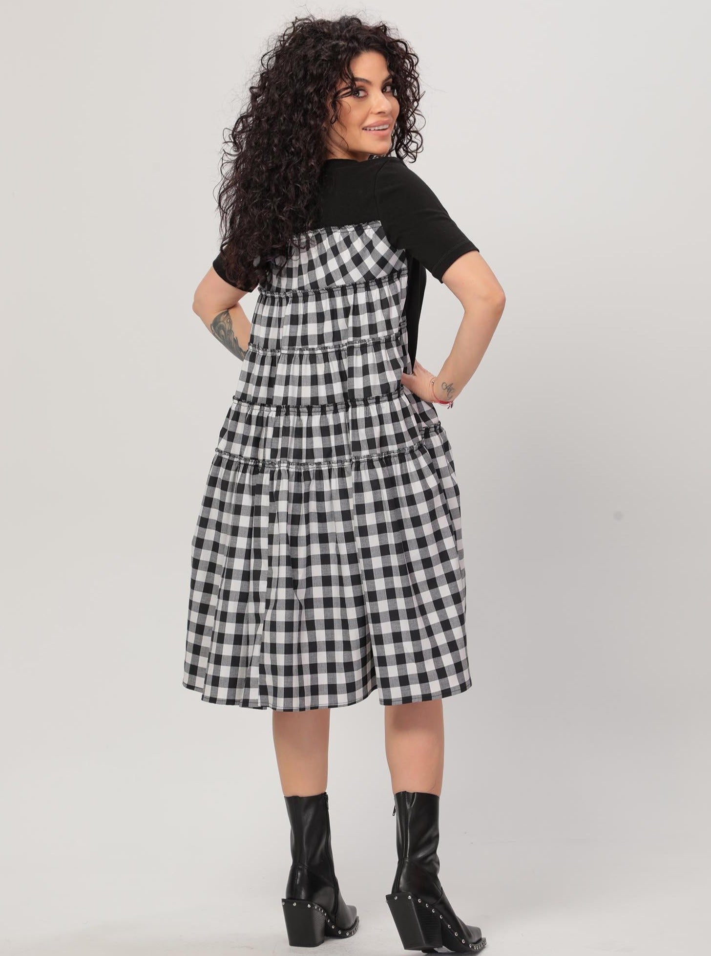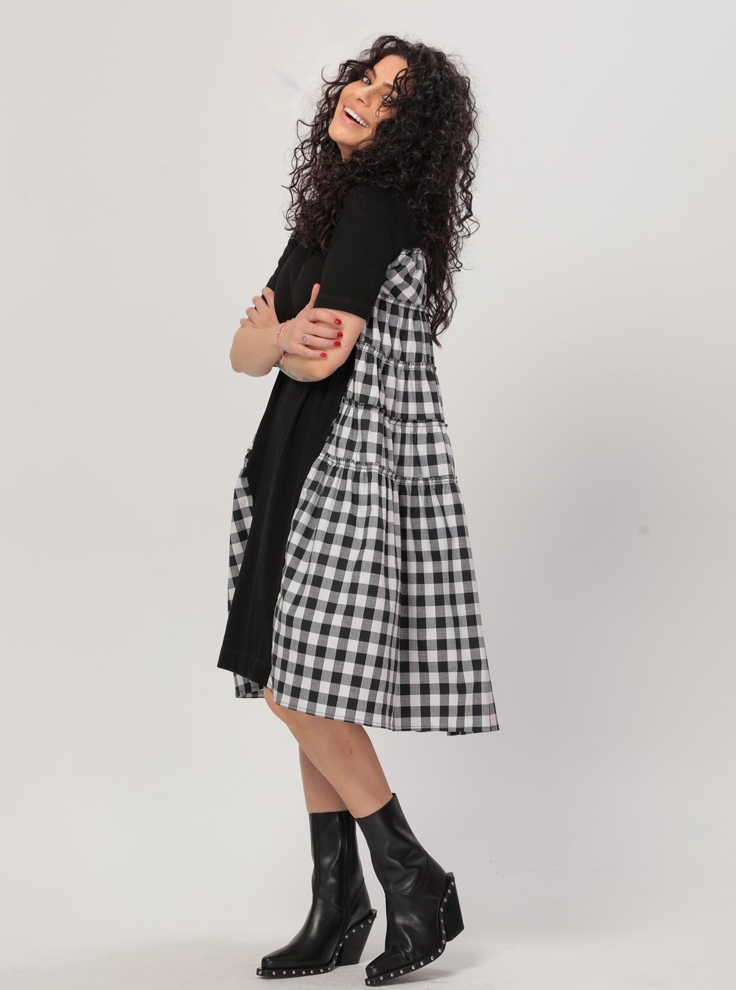 Unveil your unique sense of style with our A-Line Poplin Back Midi Dress – a masterpiece that effortlessly marries striking design with timeless elegance. The garment features a strong A-line silhouette that flatters and empowers. Its classic crew neckline complements the overall design, while the short length sleeves add a touch of charm. Crafted with meticulous attention to detail, the dress boasts a soft jersey base that embraces your body in comfort. The true focal point lies in the richly gathered back, crafted from high-quality poplin cotton.