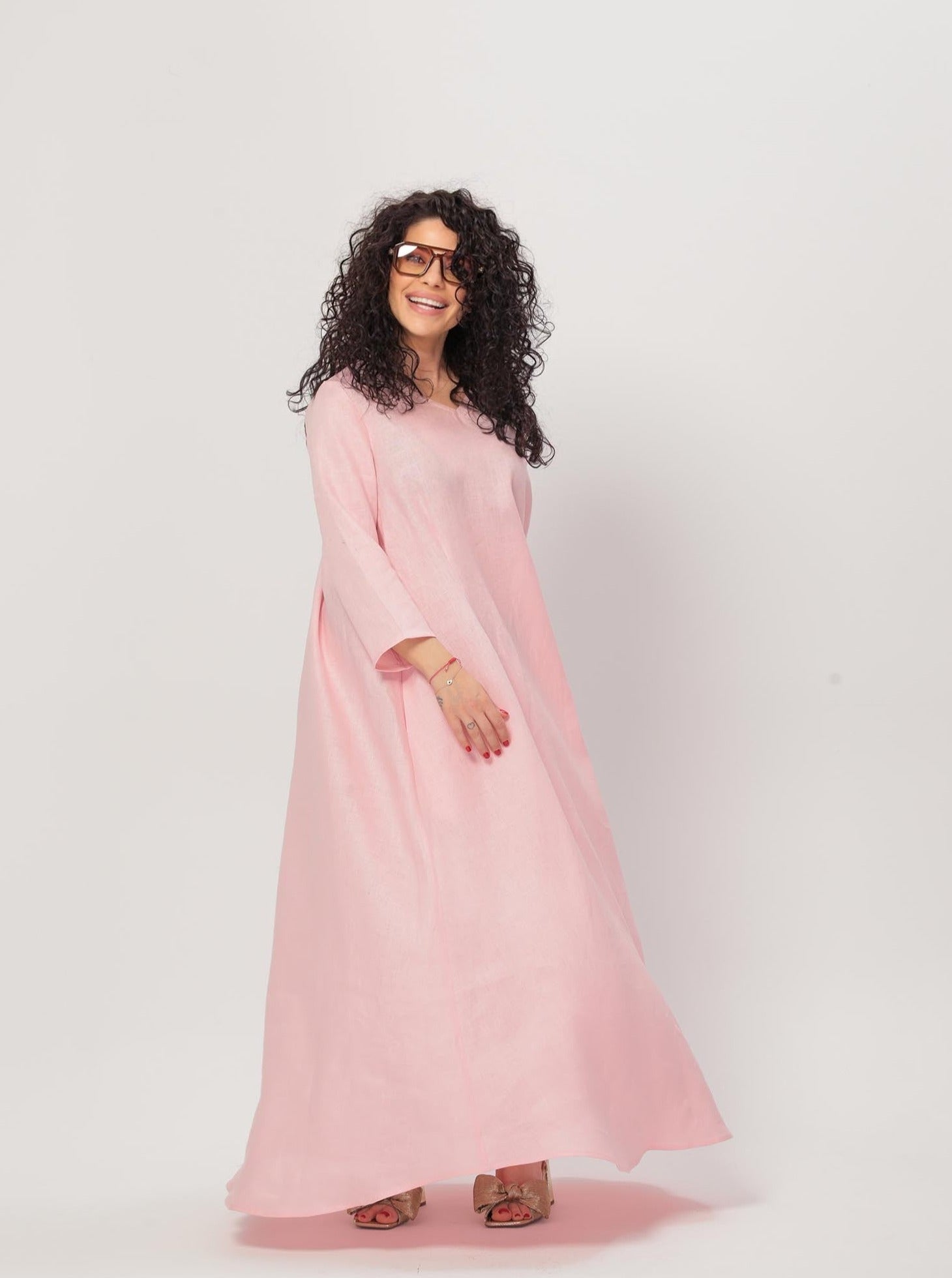 Elevate your wardrobe with our Airy and Stylish Long Dress. Made from lightweight fabric, this dress features a flattering V-neckline, 7/8 length sleeves, and convenient side pockets. The loose fit of the dress makes it easy to slip on and off, while the dress's versatility makes it perfect for any occasion. Choose from a range of colors and add this chic piece to your collection today.