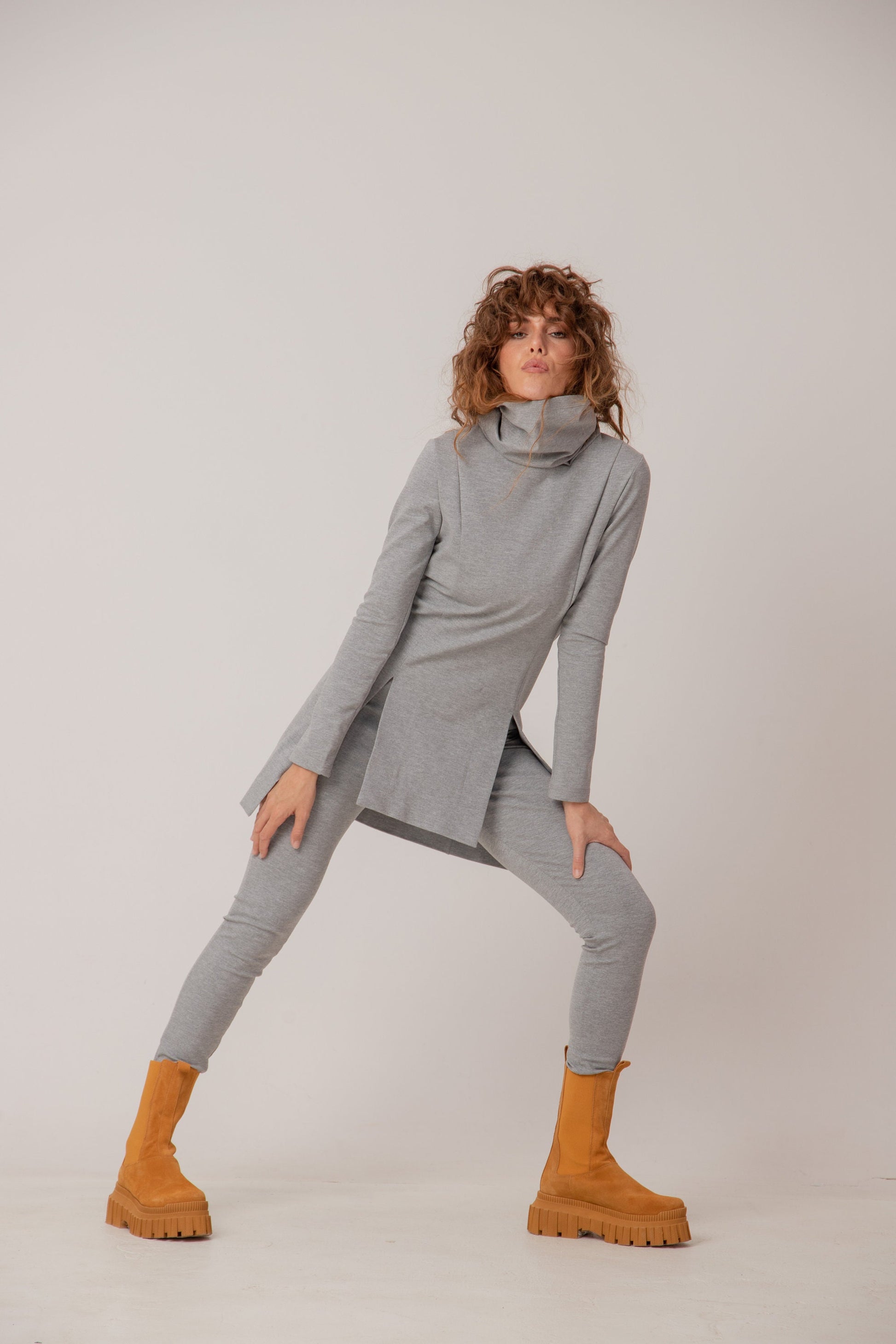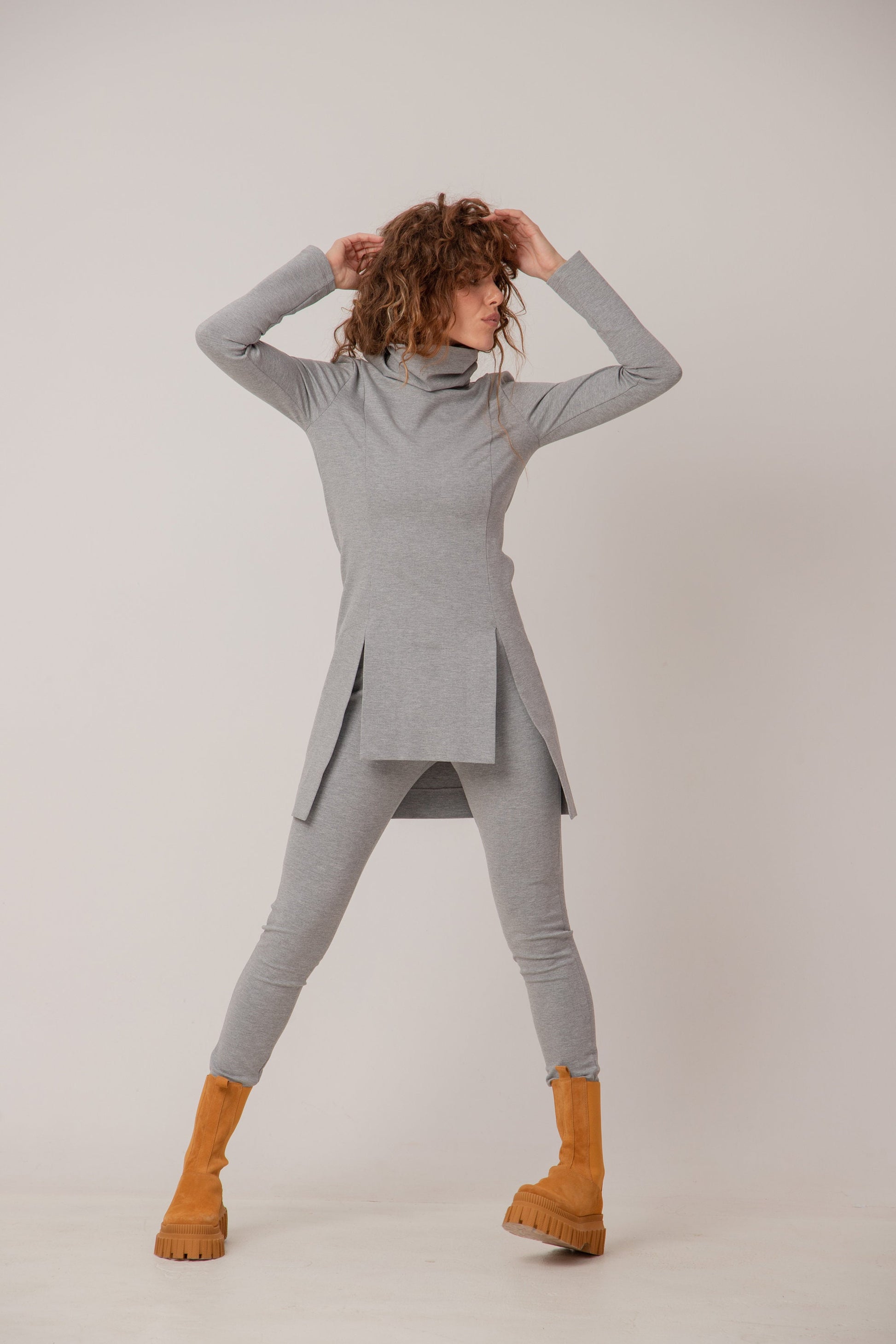Discover the perfect combination of style and comfort with our HIARI Elongated Tunic and Matching Leggings Set. The fitted top silhouette of the tunic offers a flattering look, while its elongated design with side splits adds a touch of elegance. The high neck collar adds a sophisticated flair to the ensemble. Paired with the tunic, the skinny fit leggings provide a seamless and stylish accompaniment. Crafted from high-quality elasticated jersey, this set ensures both comfort and flexibility.