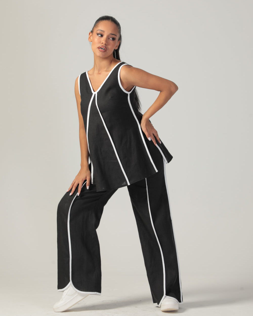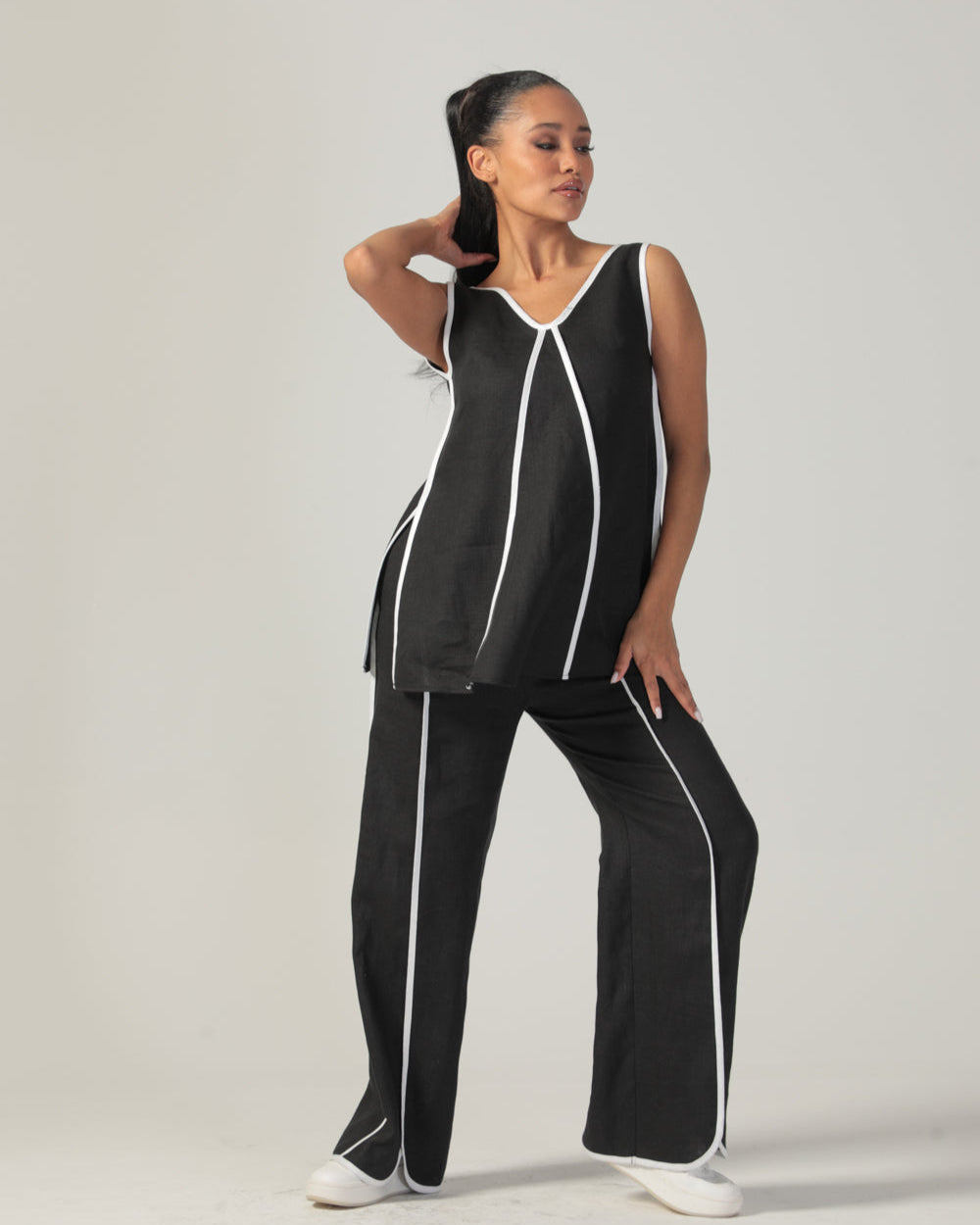 Embrace effortless style with the Isla Set, a perfect blend of modern sophistication and comfort. This two-piece ensemble features a sleek, relaxed-fit top paired with matching trousers, offering a flattering silhouette and versatile styling options. Crafted from high-quality, breathable fabric, the Isla Set is designed for everyday wear, offering both comfort and elegance.