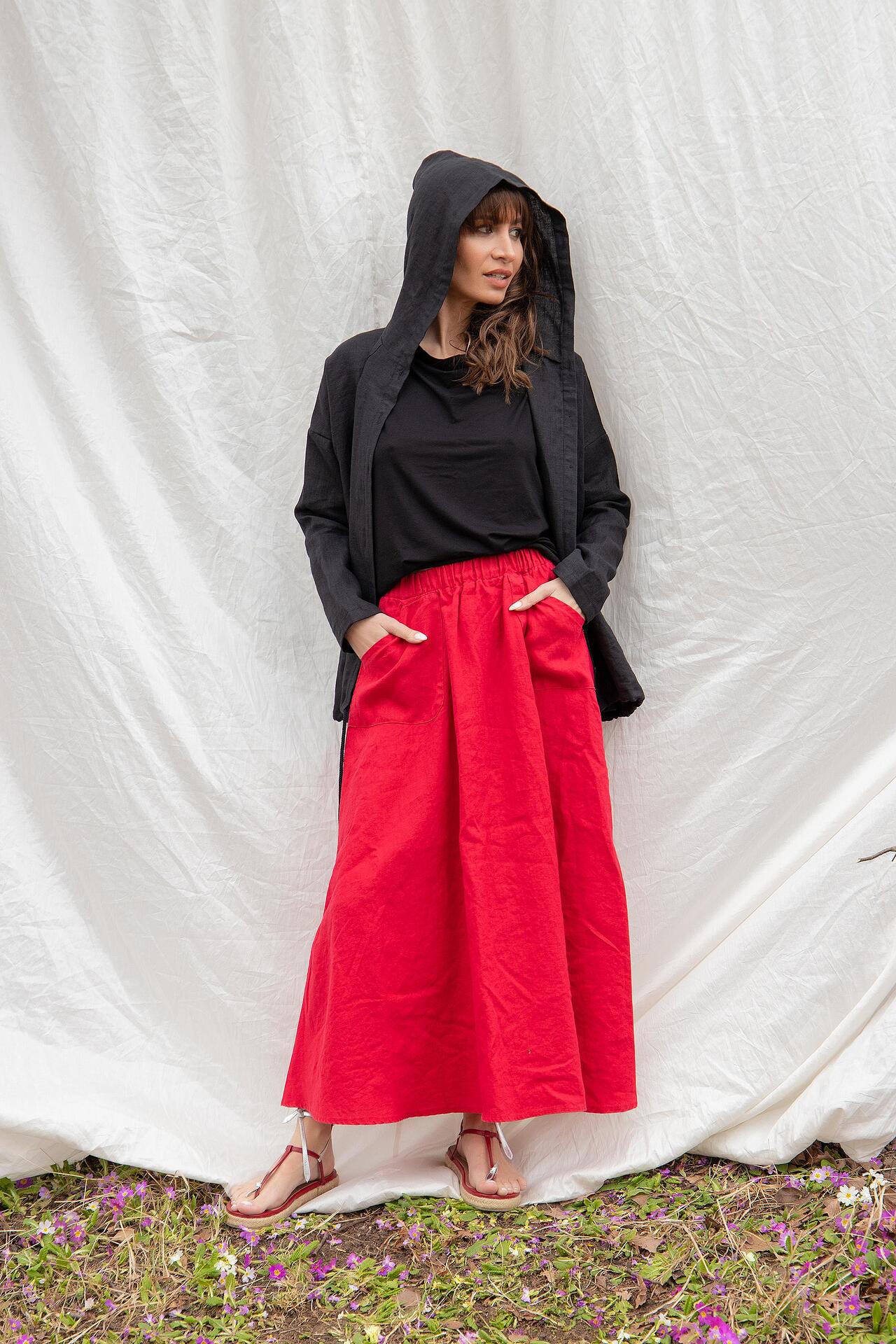 Linen Skirt with Side Pockets - RASHIDA