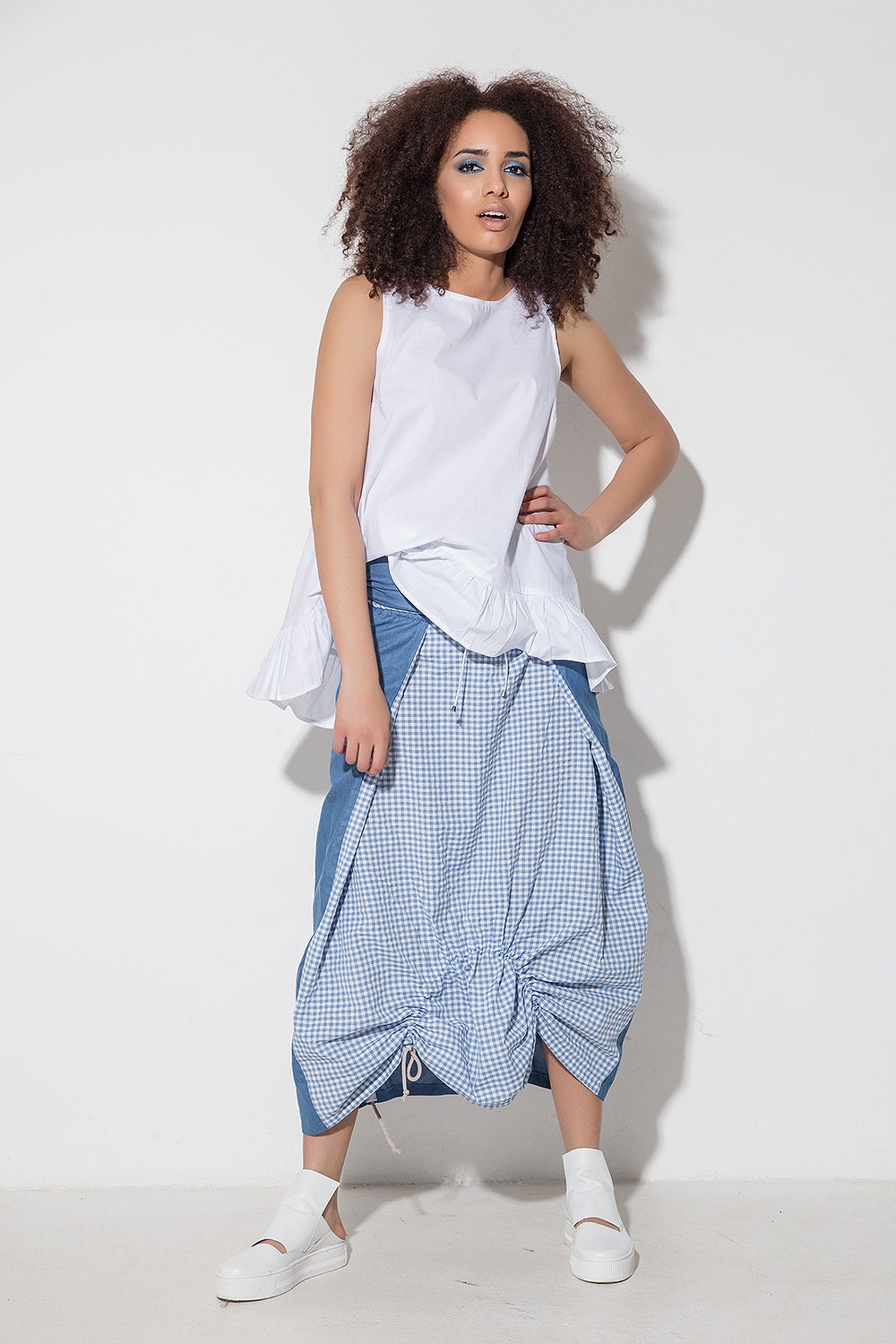 • Contrast gingham front