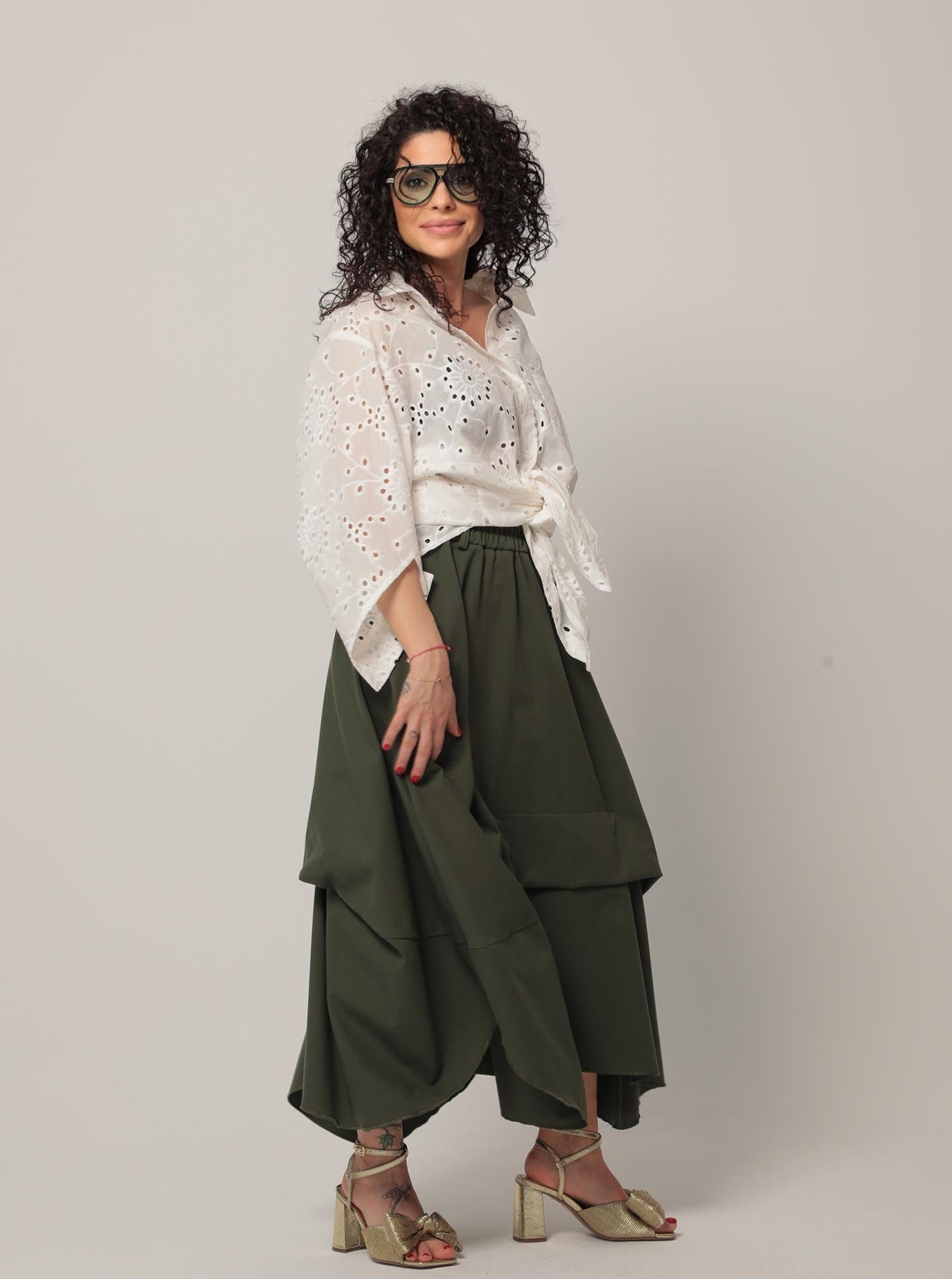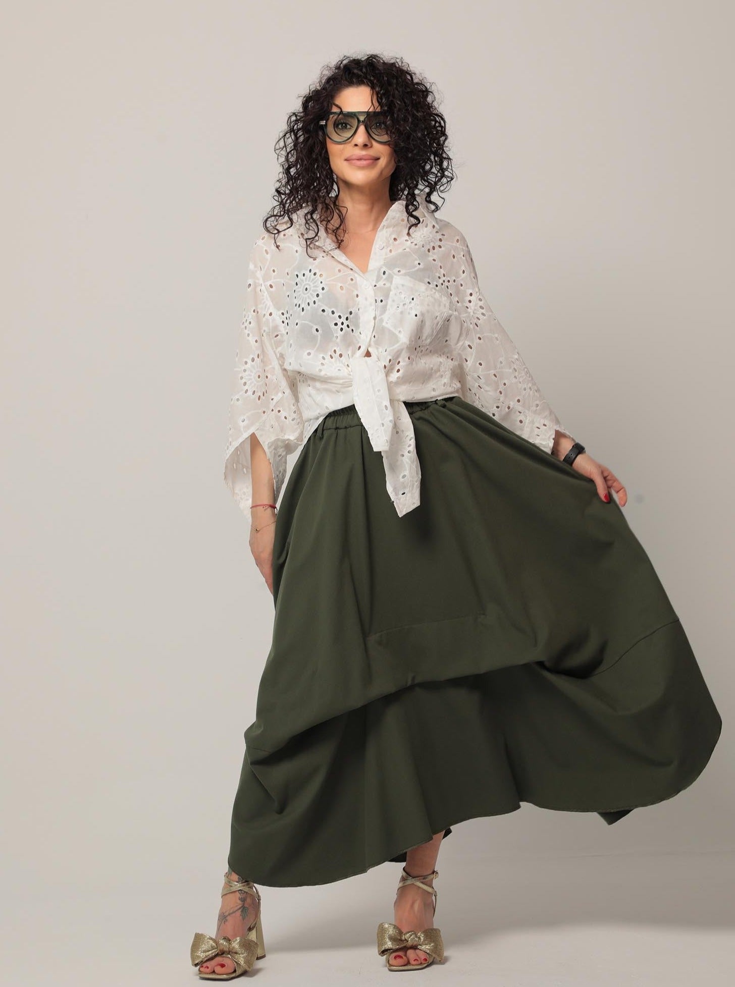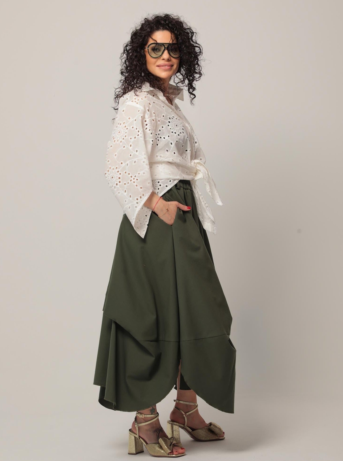 Discover the Mei Skirt, a perfect blend of sustainability and style. Crafted from a mix of cotton and recycled polyester, this skirt features an eye-catching asymmetrical design and a comfortable elastic waistband. Its extravagant look makes it a standout piece for any occasion. Add a touch of modern elegance to your wardrobe with the Mei Skirt.