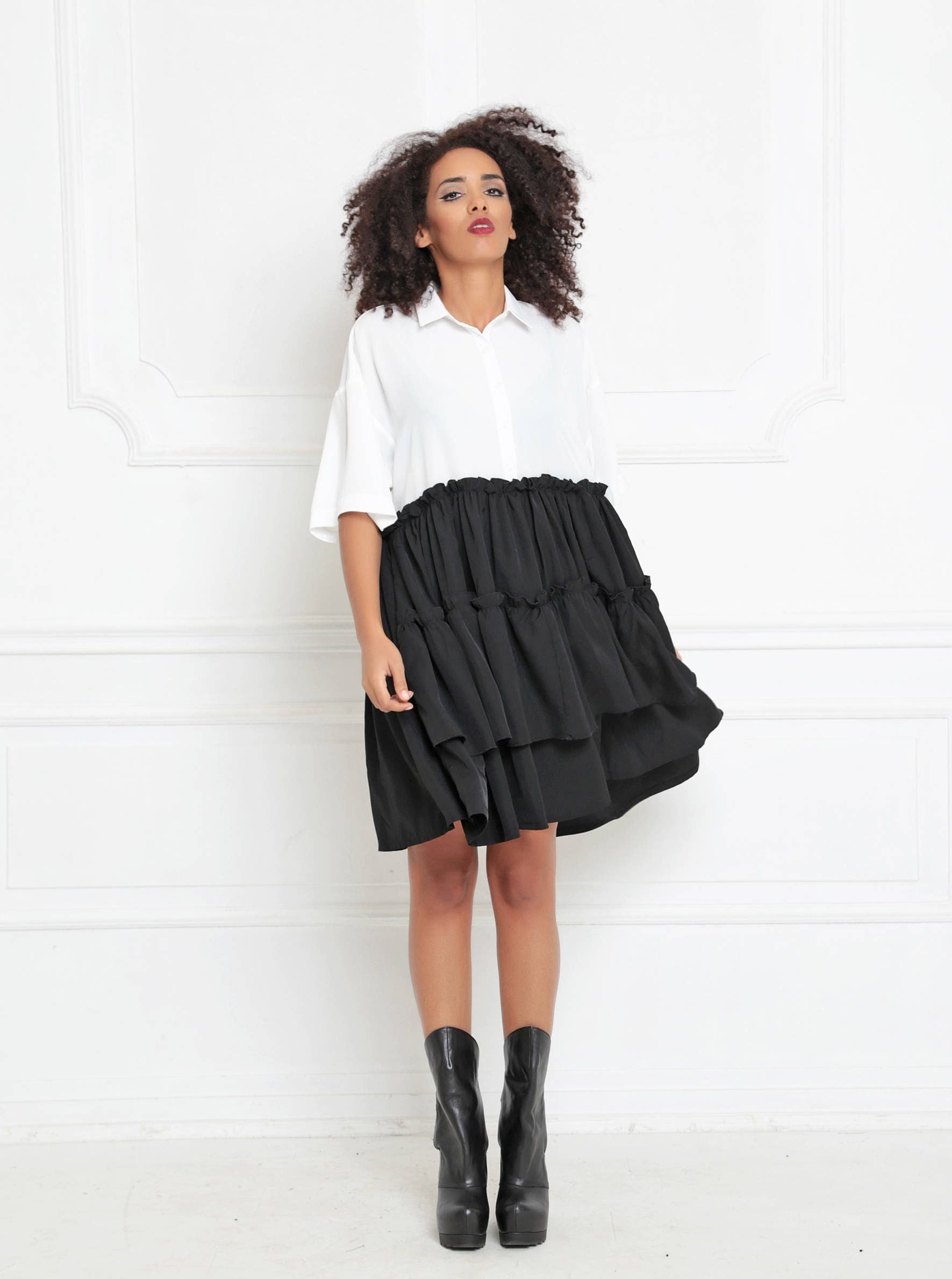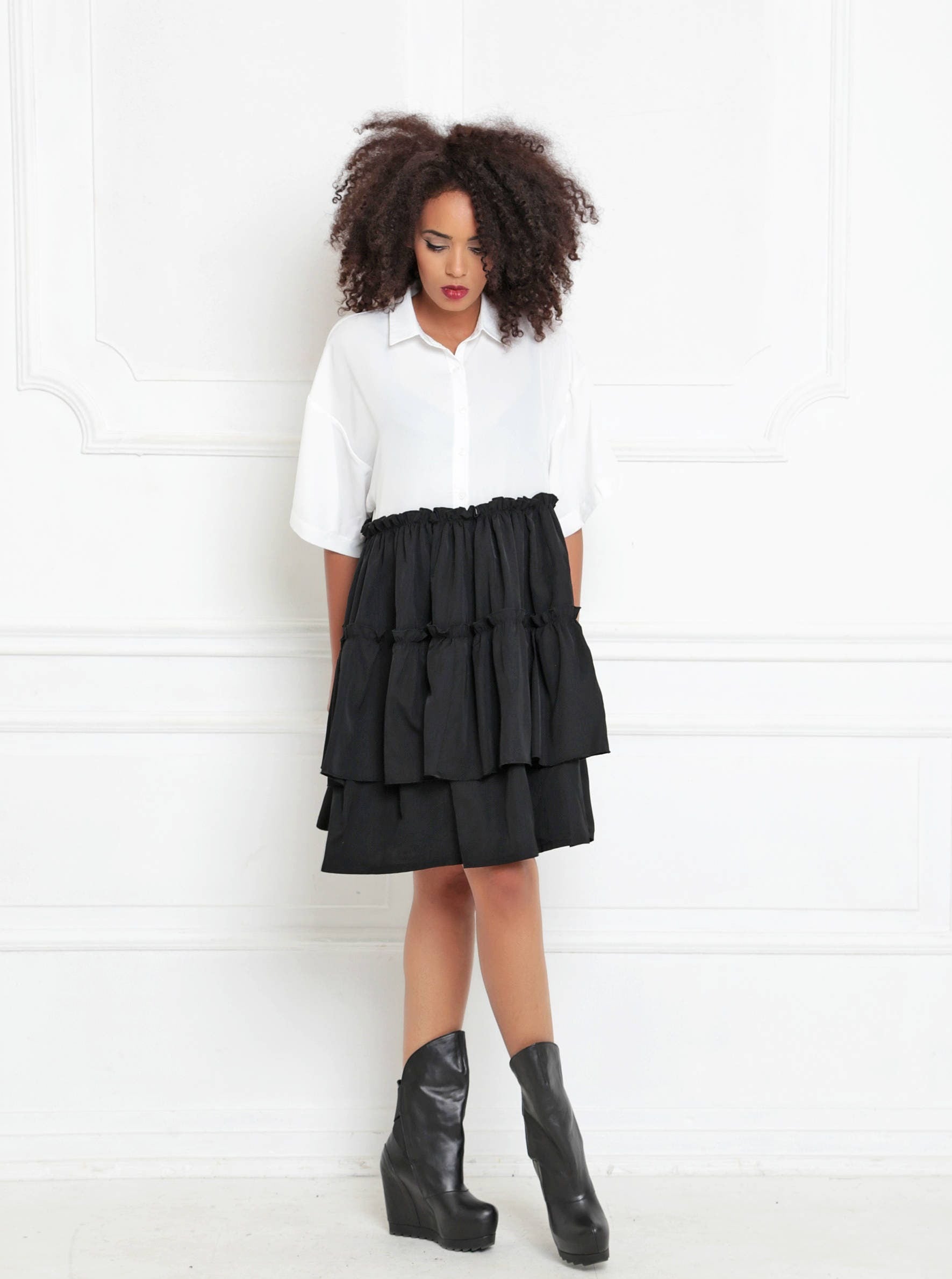 Nori Dress is designed with a classic above-the-knee length, this dress strikes a balance between elegance and comfort, making it suitable for a range of occasions. The loose ½ sleeves provide a relaxed and airy feel, while the rich gathered details in tiers create an eye-catching texture that adds depth and dimension to the dress.