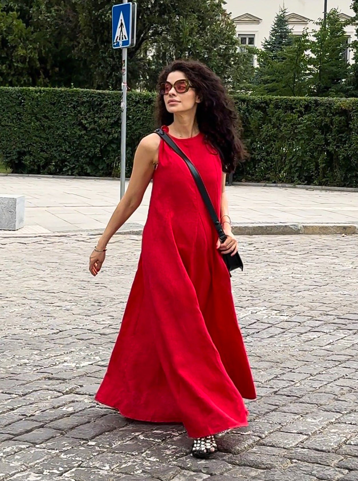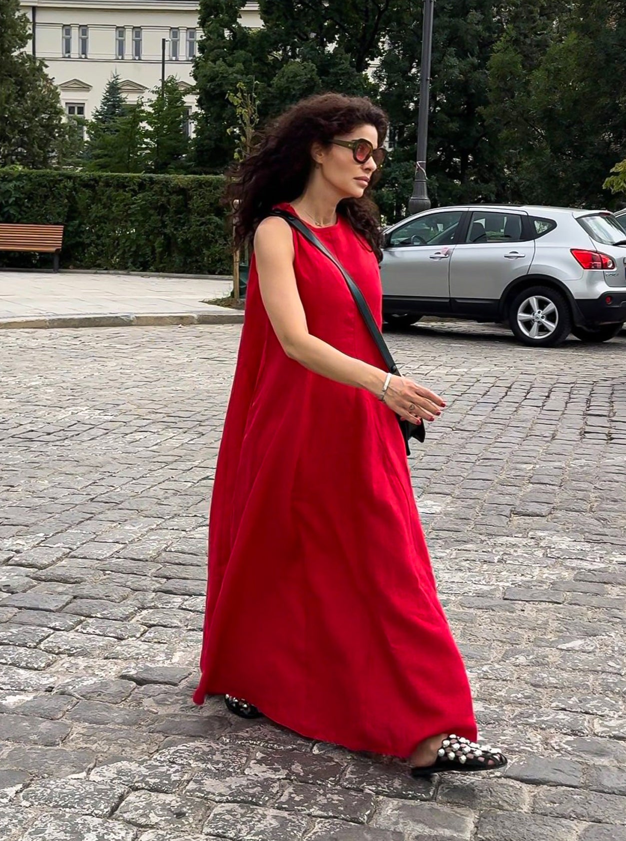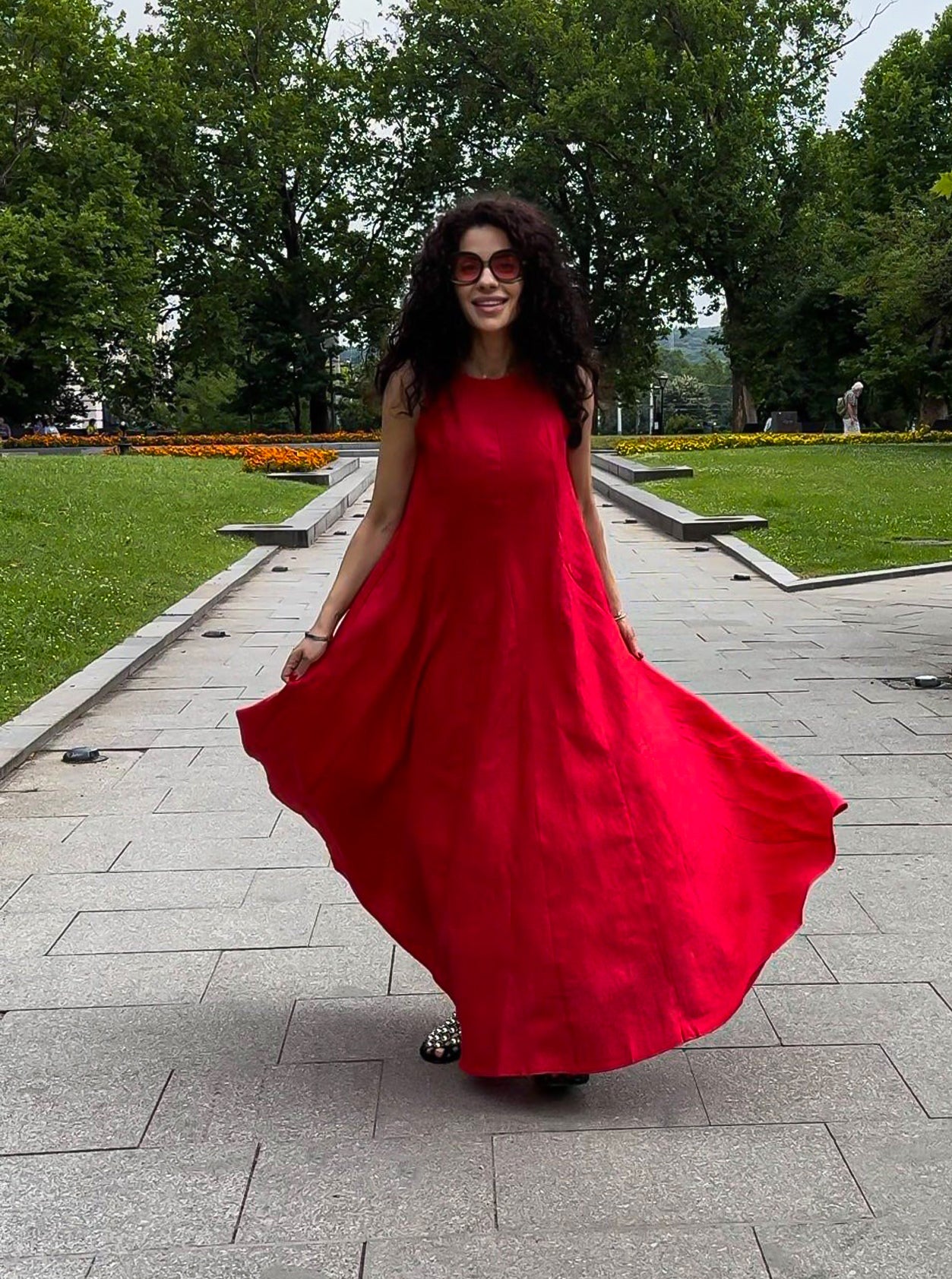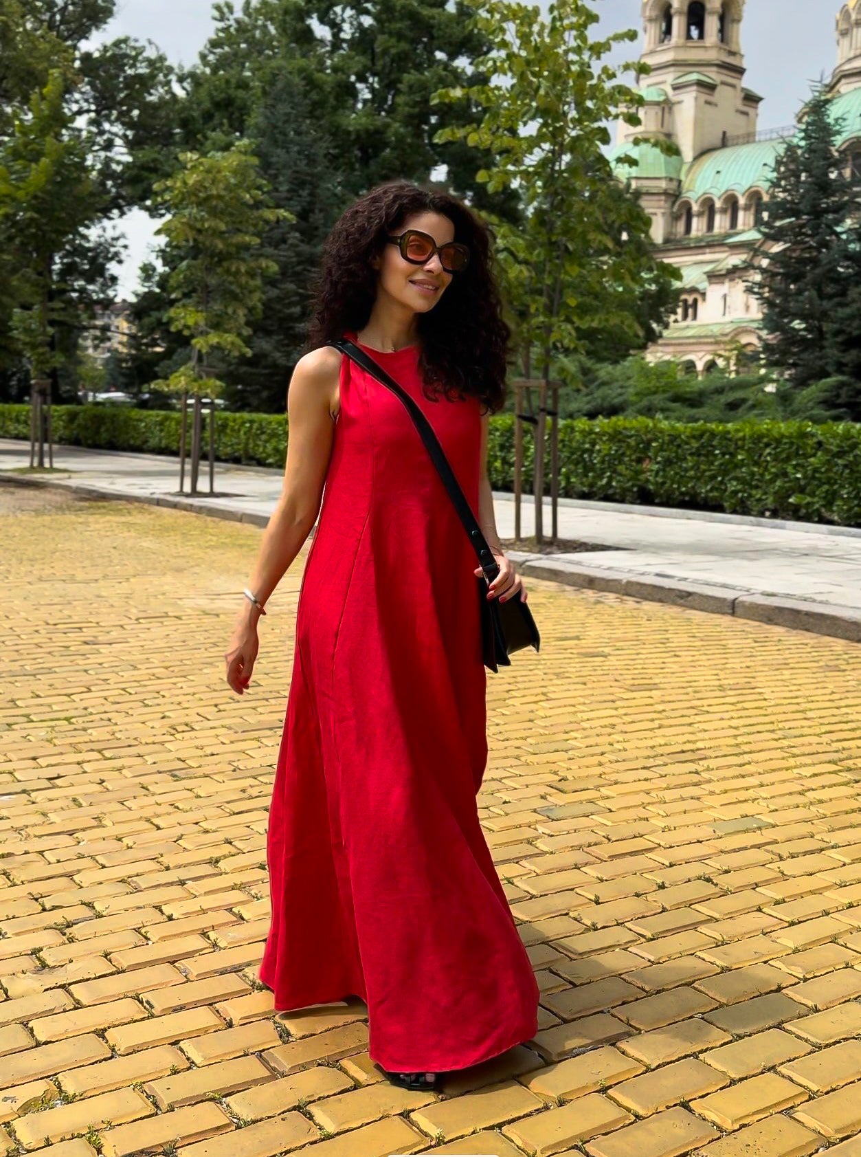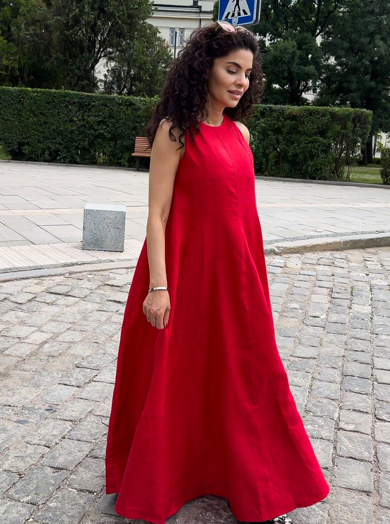 Our Sharin Linen Maxi Dress epitomizes effortless elegance and comfort. Crafted from premium linen fabric, it features a round neckline, sleeveless , and a flowing A-line silhouette for a flattering fit on any body type. Perfect for both casual and formal occasions, this dress is available in a variety of patterns and colors. Elevate your summer wardrobe with the Sharin Linen Maxi Dress!