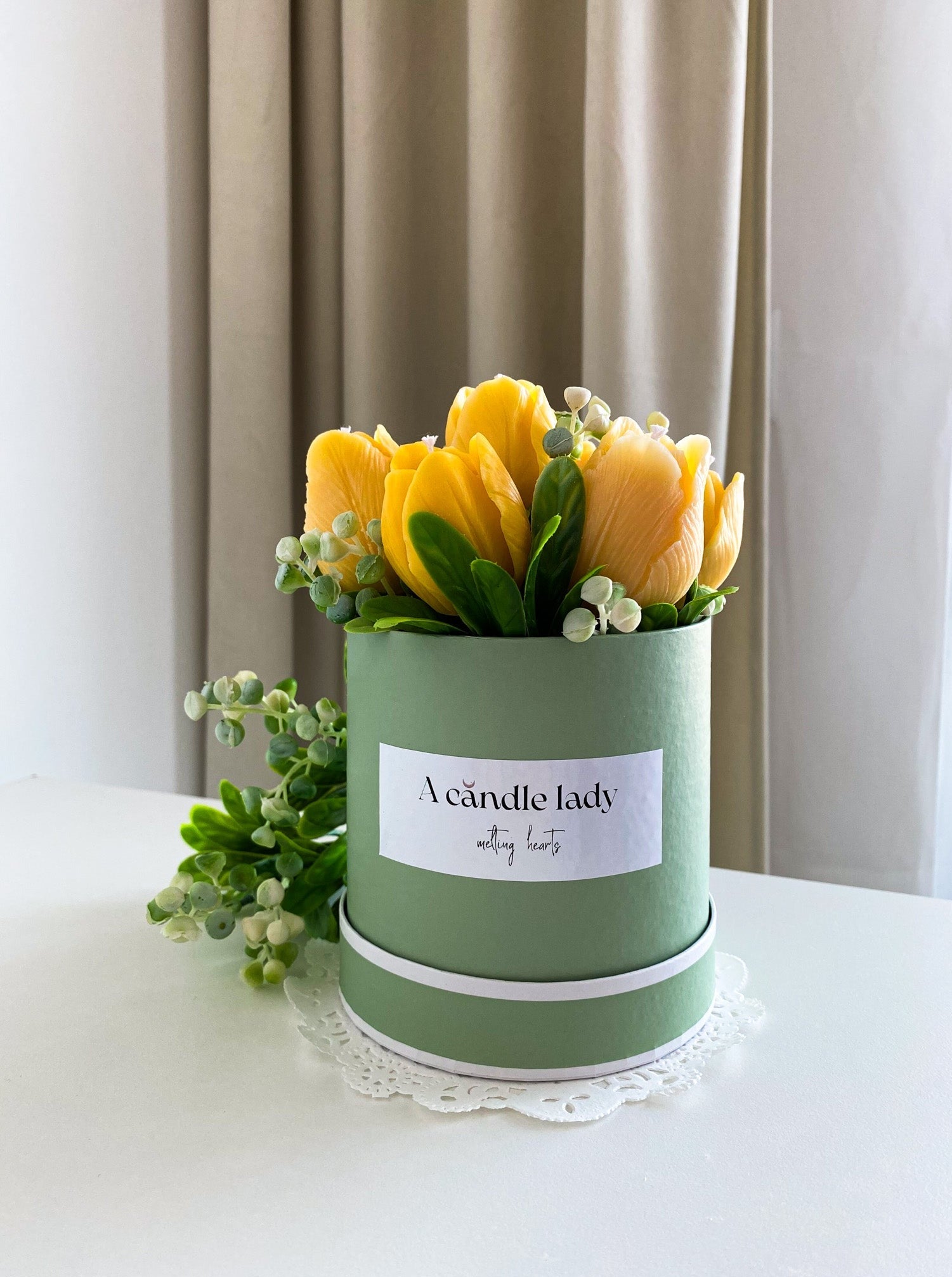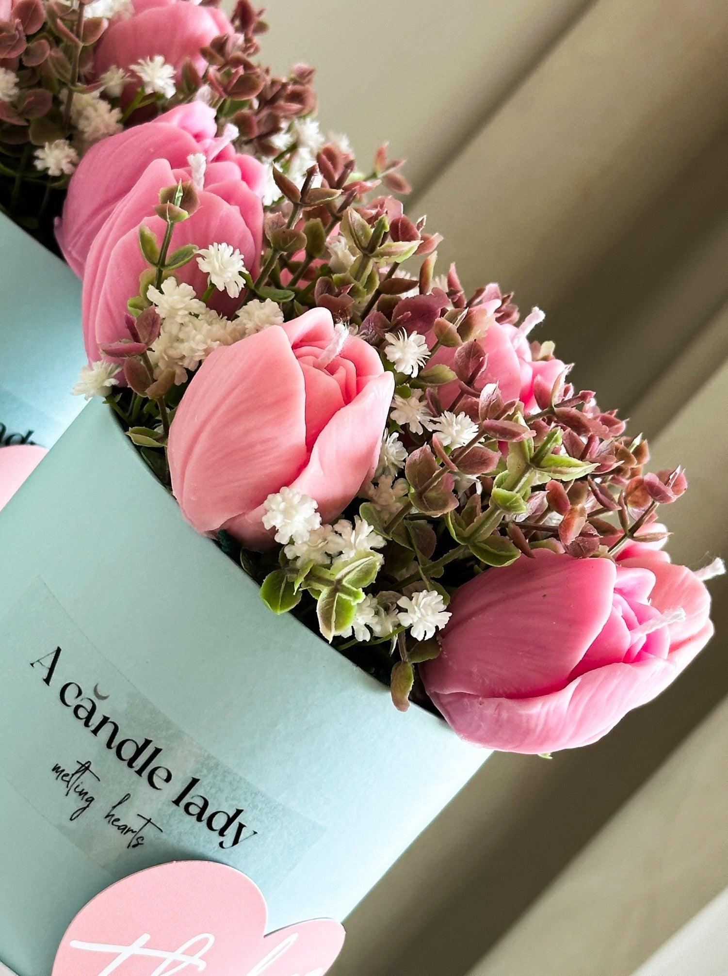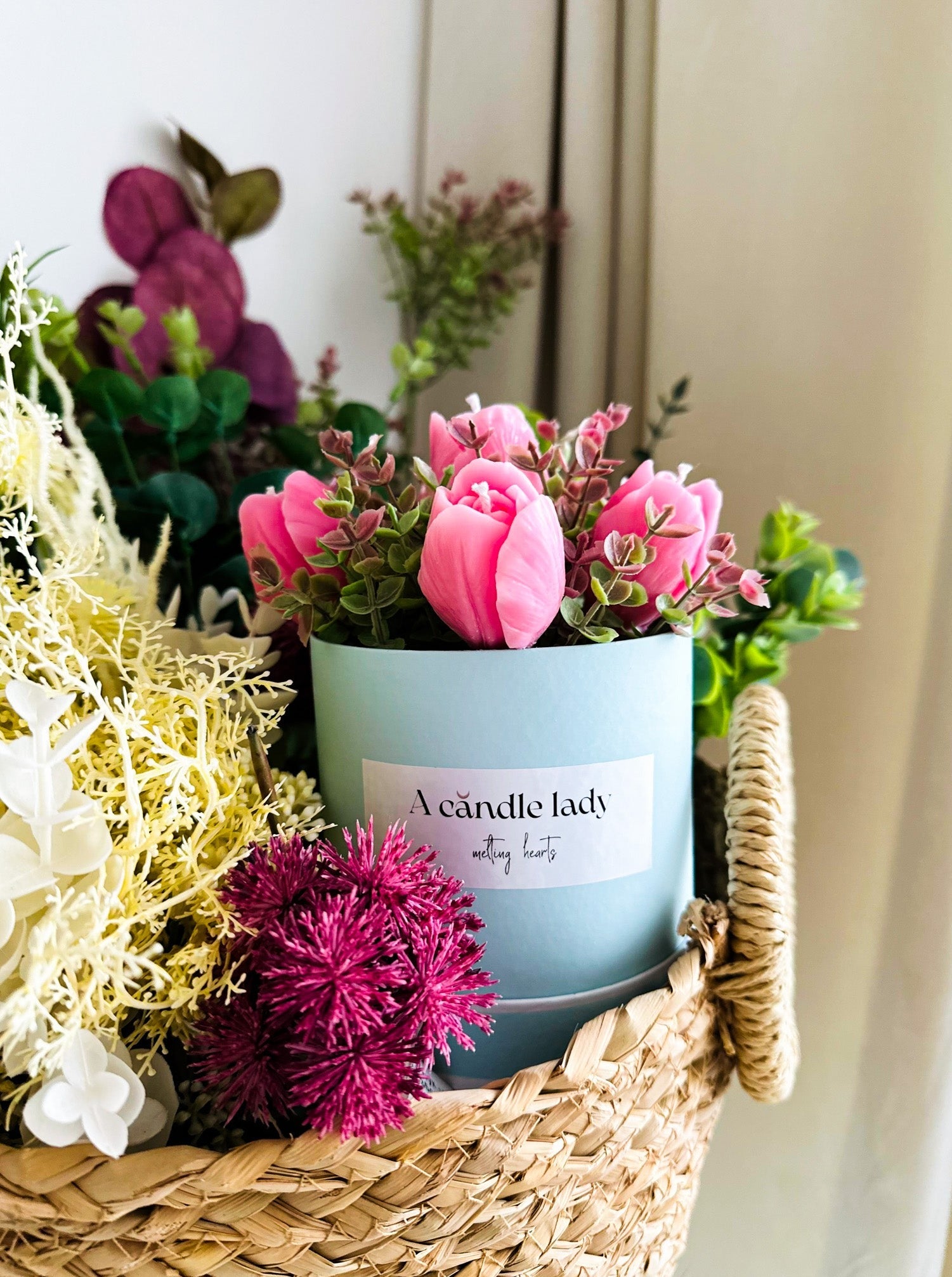 Immerse yourself in the timeless elegance of our candle tulip bouquet. Each candle is delicately sculpted into the graceful form of a tulip, their soft petals gently unfolding to reveal a warm, flickering flame within. The bouquet is arranged with meticulous care, blending colors that range from delicate pastels to vibrant hues, creating a harmonious display of light and beauty.