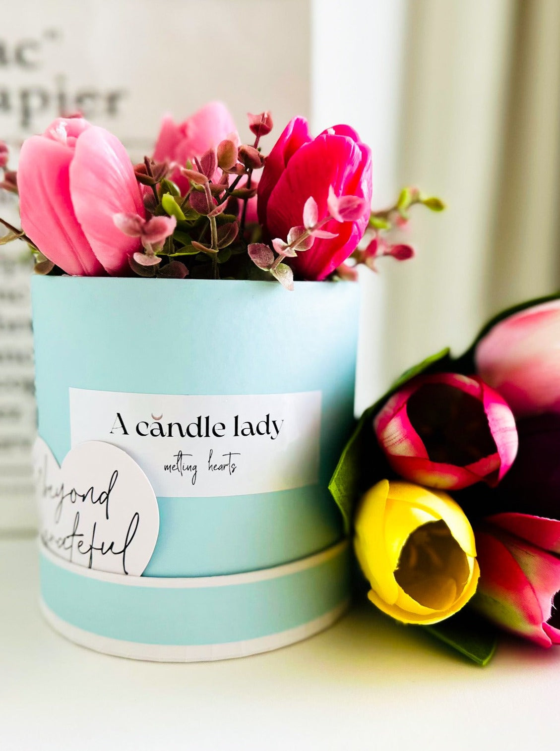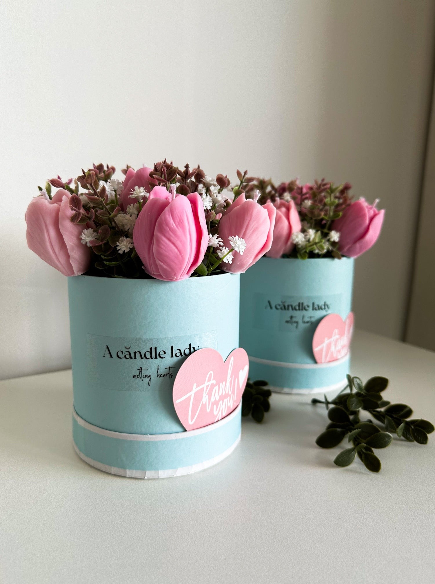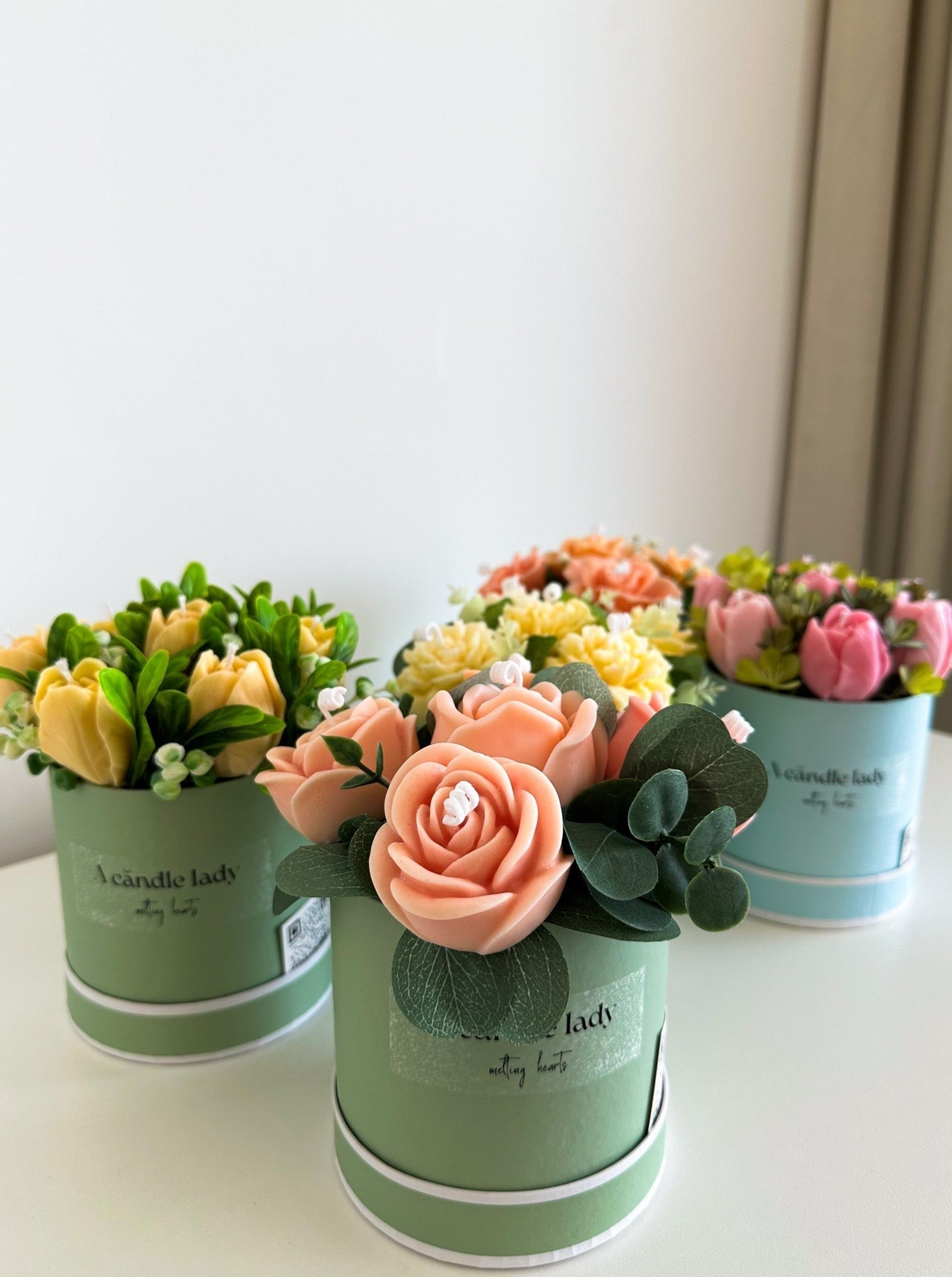 Immerse yourself in the timeless elegance of our candle tulip bouquet. Each candle is delicately sculpted into the graceful form of a tulip, their soft petals gently unfolding to reveal a warm, flickering flame within. The bouquet is arranged with meticulous care, blending colors that range from delicate pastels to vibrant hues, creating a harmonious display of light and beauty.