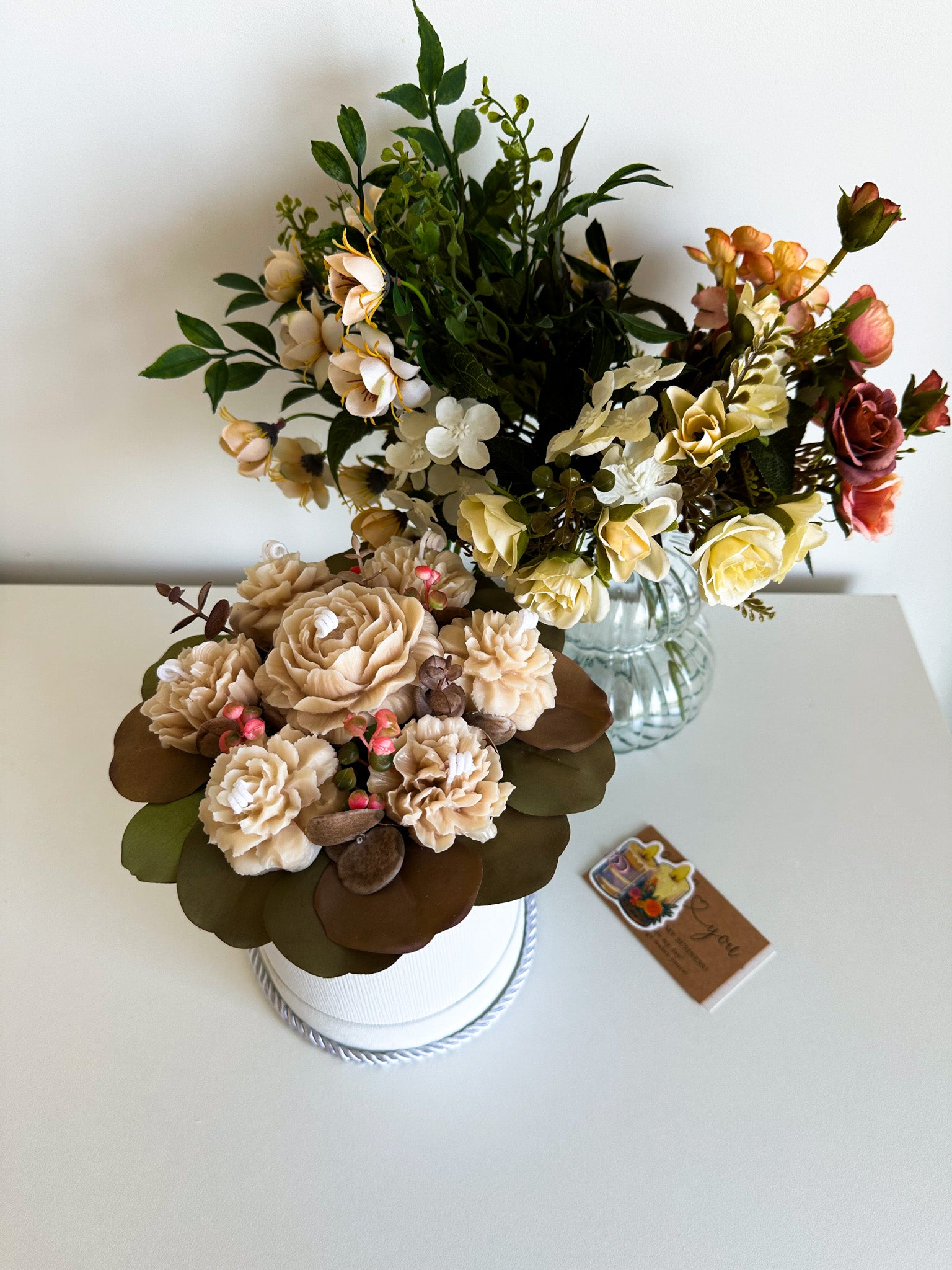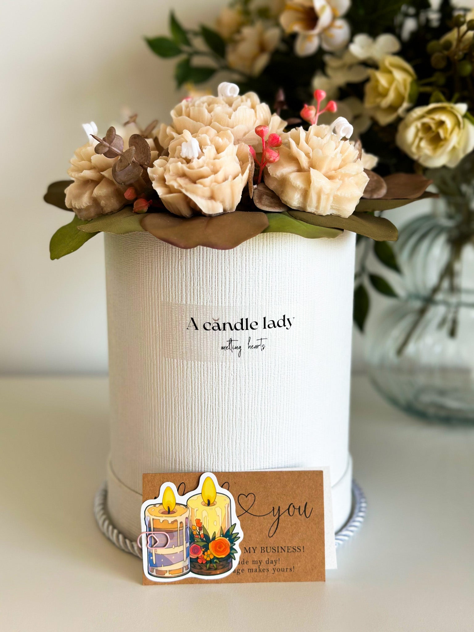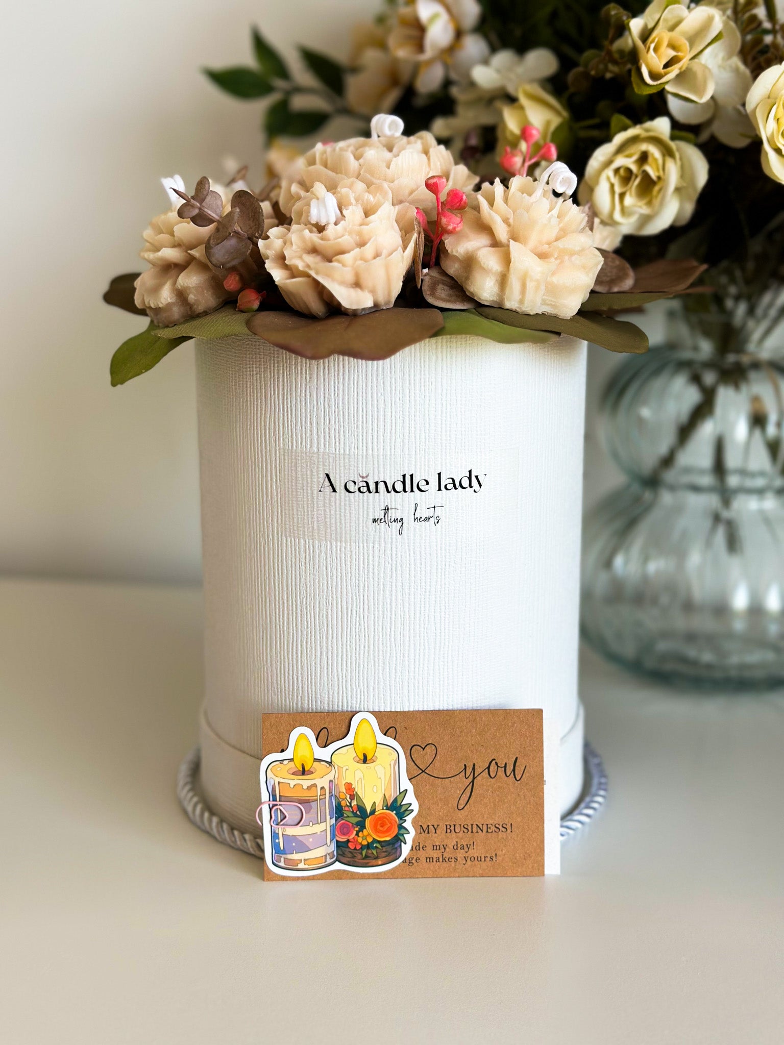 Brighten up your home with our Floral Ocasion Flowers Candle Bouquet. This charming arrangement combines the vibrant colors of spring flowers with the gentle glow of candles, creating a captivating centerpiece that brings warmth and beauty to any room. Perfect for celebrating the season, this bouquet will fill your space with light and a delightful floral fragrance.