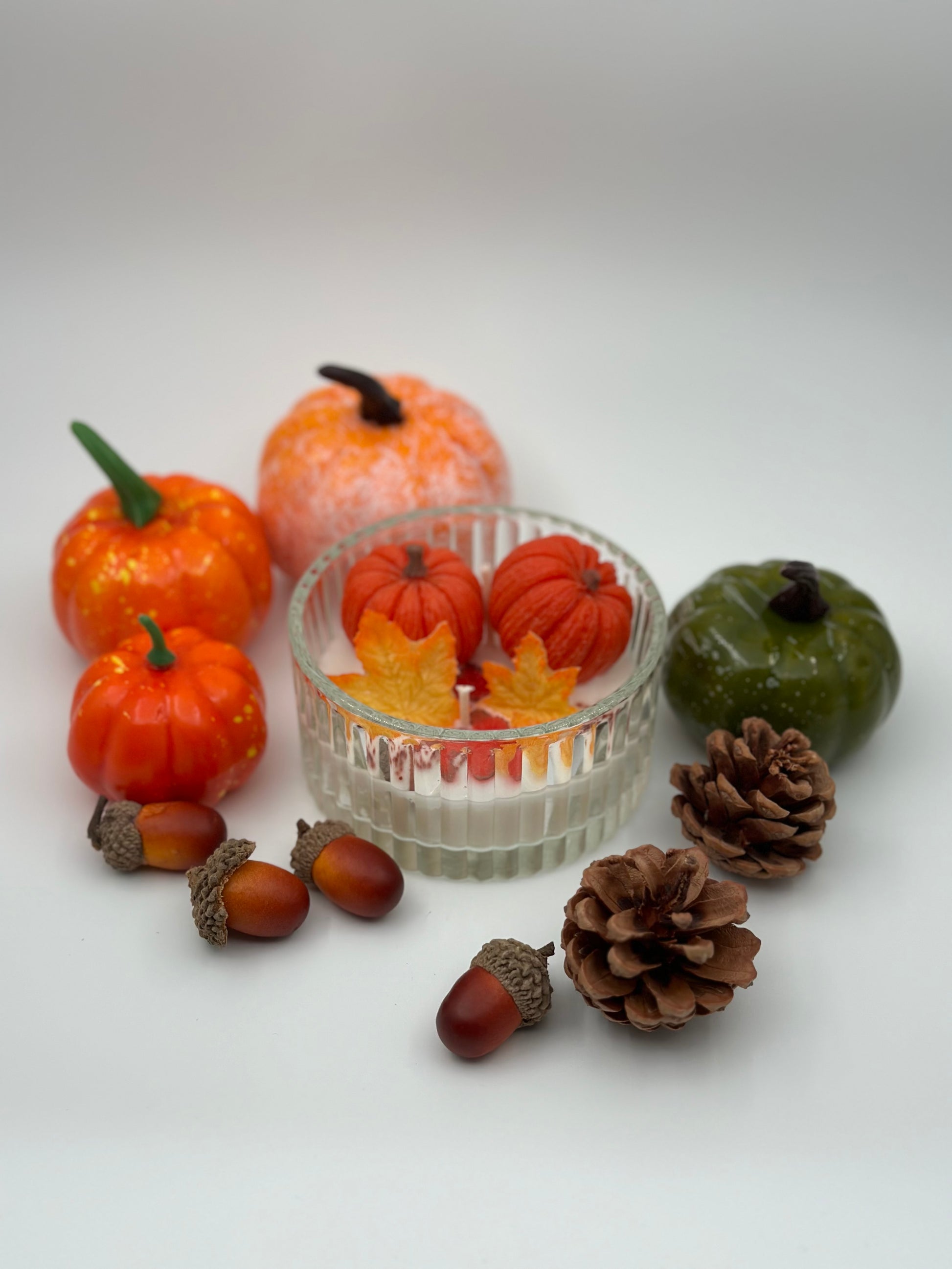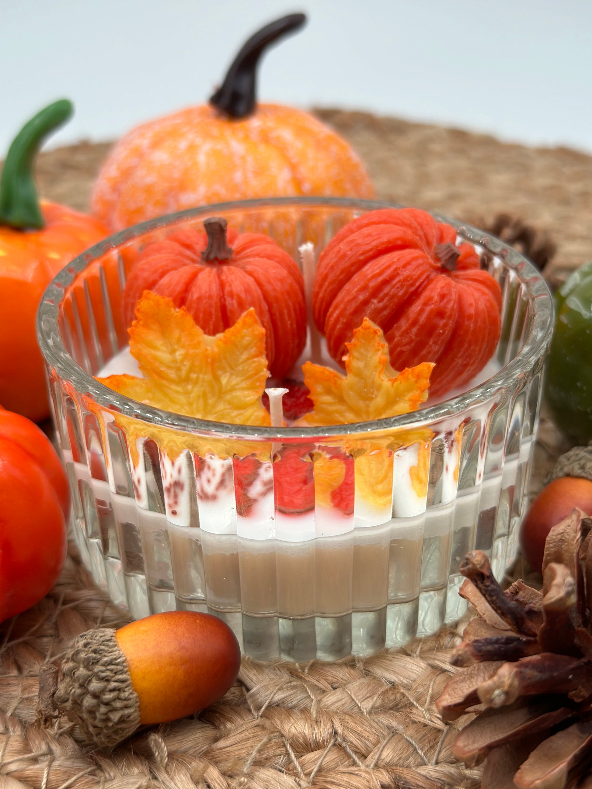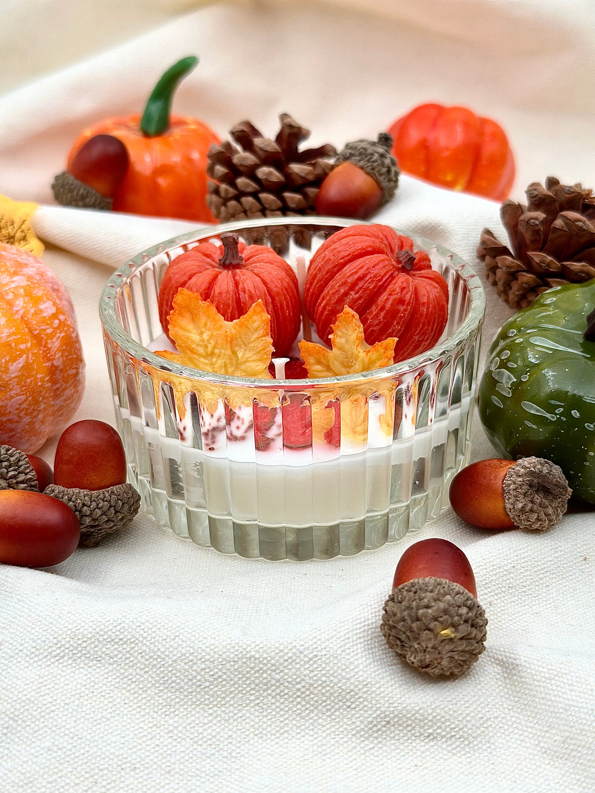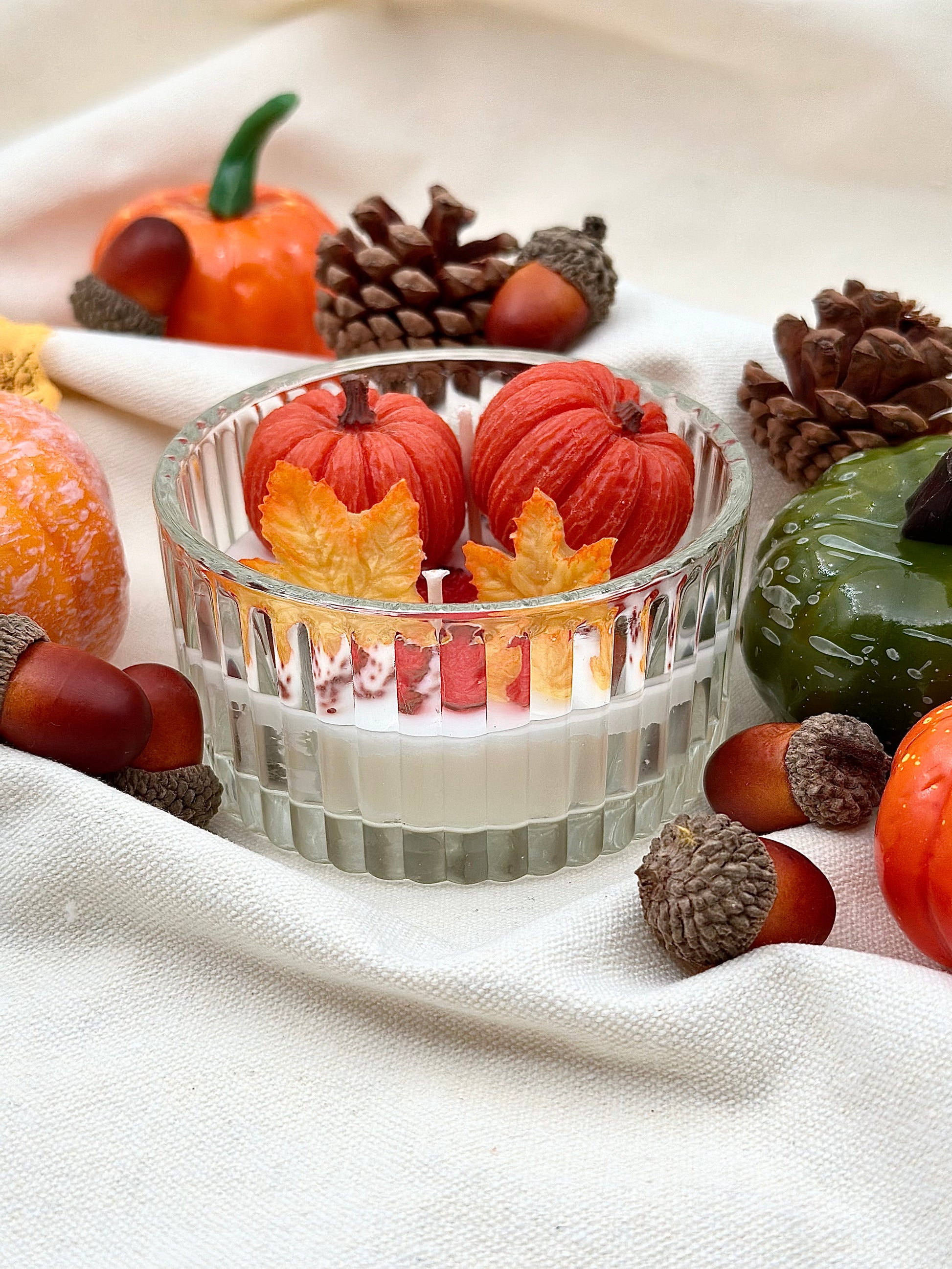 Embrace the essence of fall with our handmade Halloween pumpkin candle.