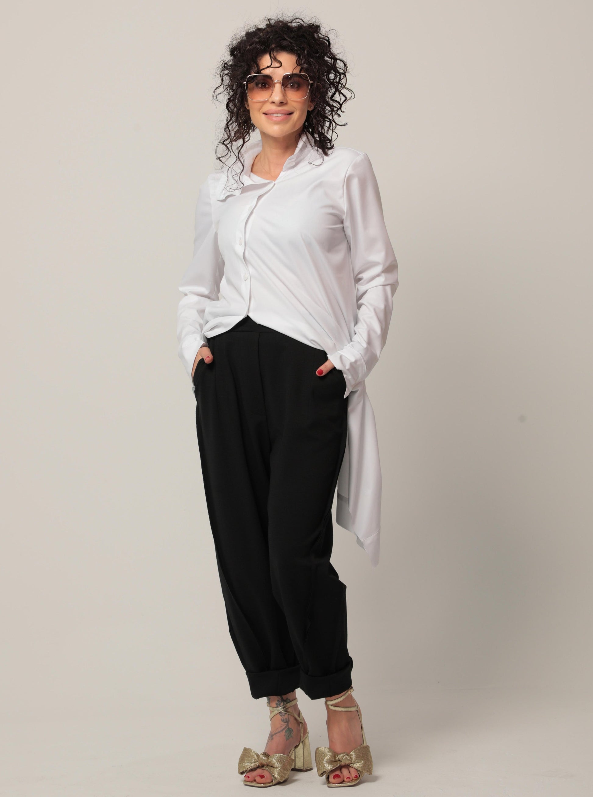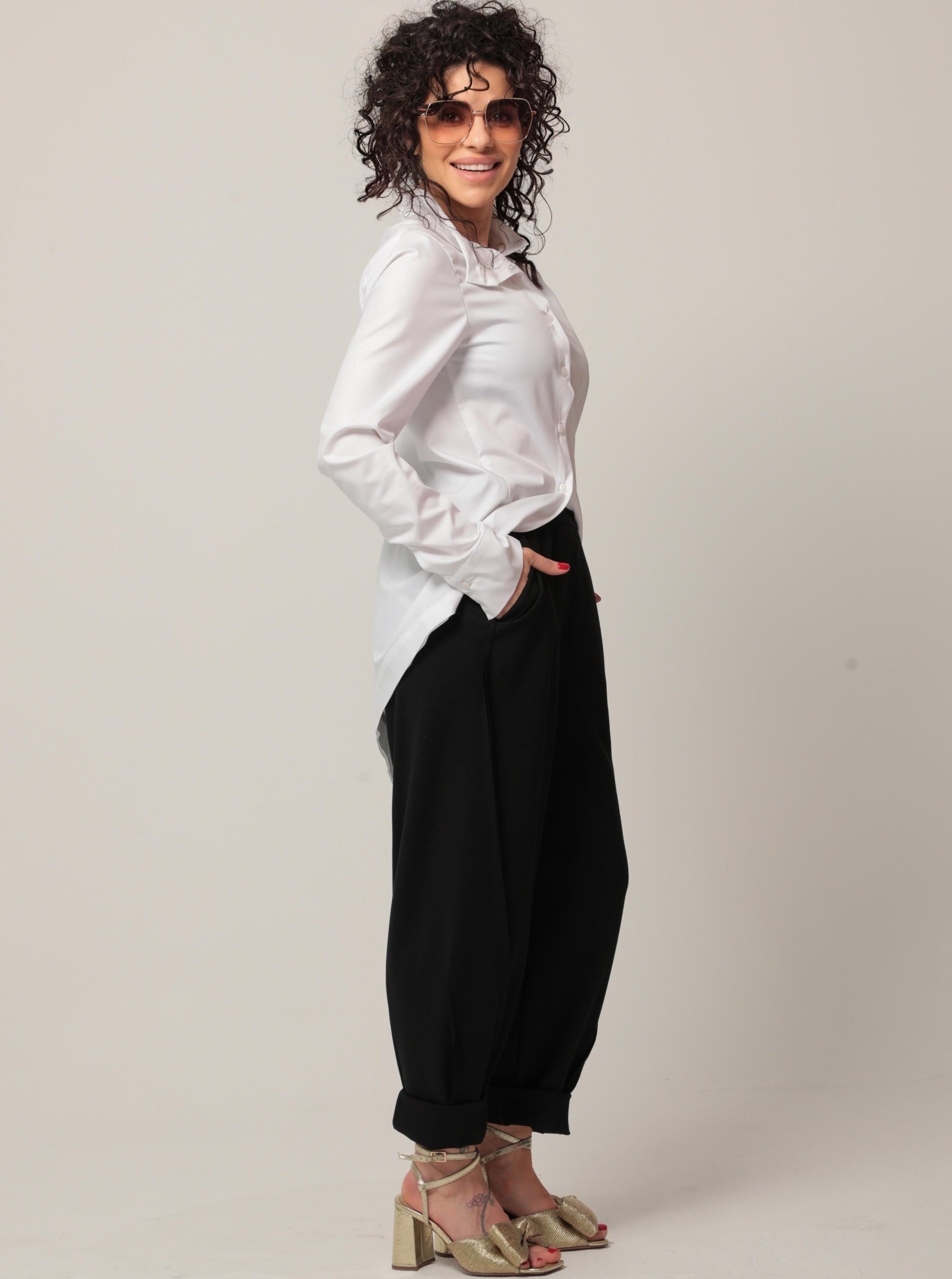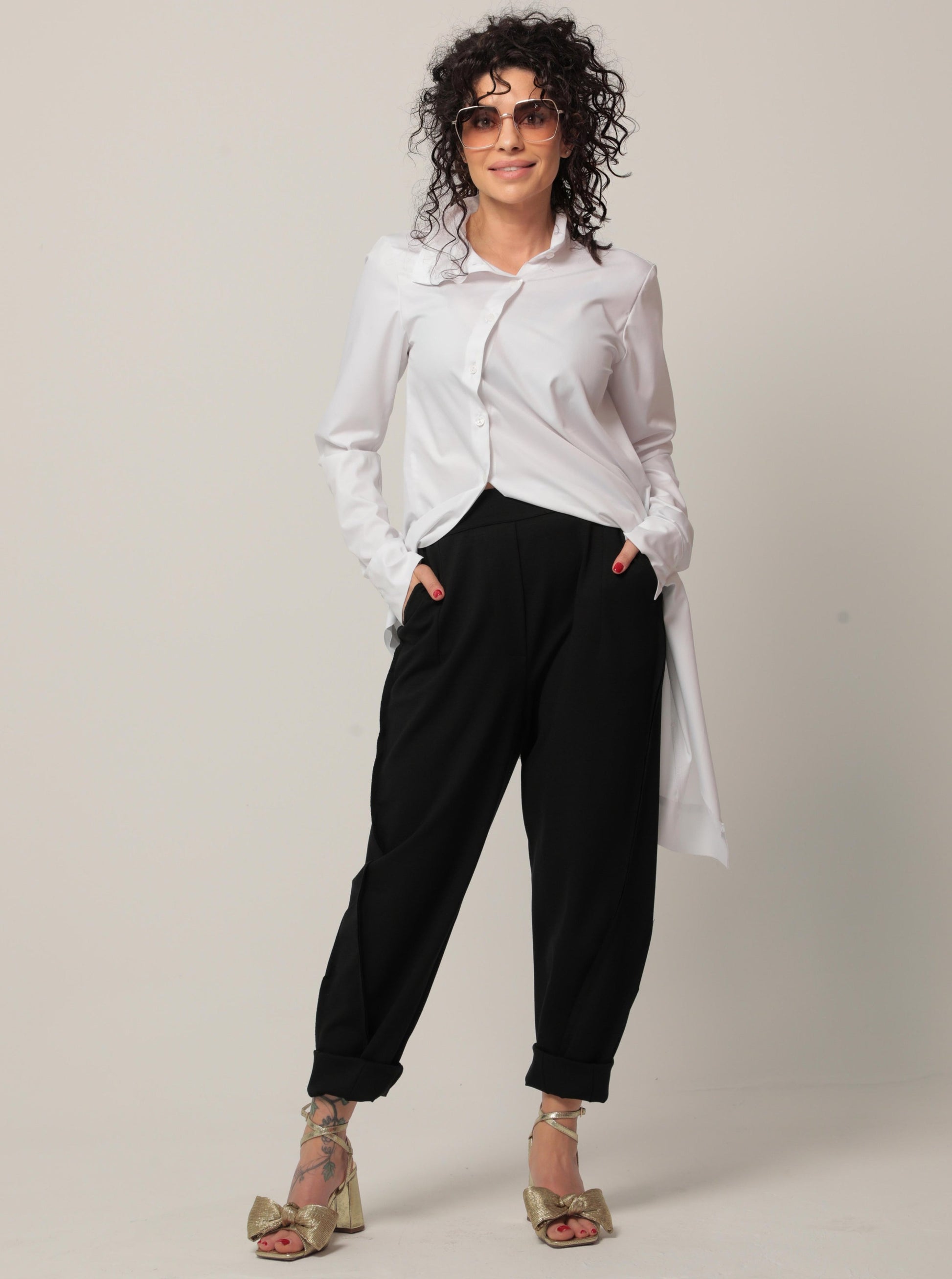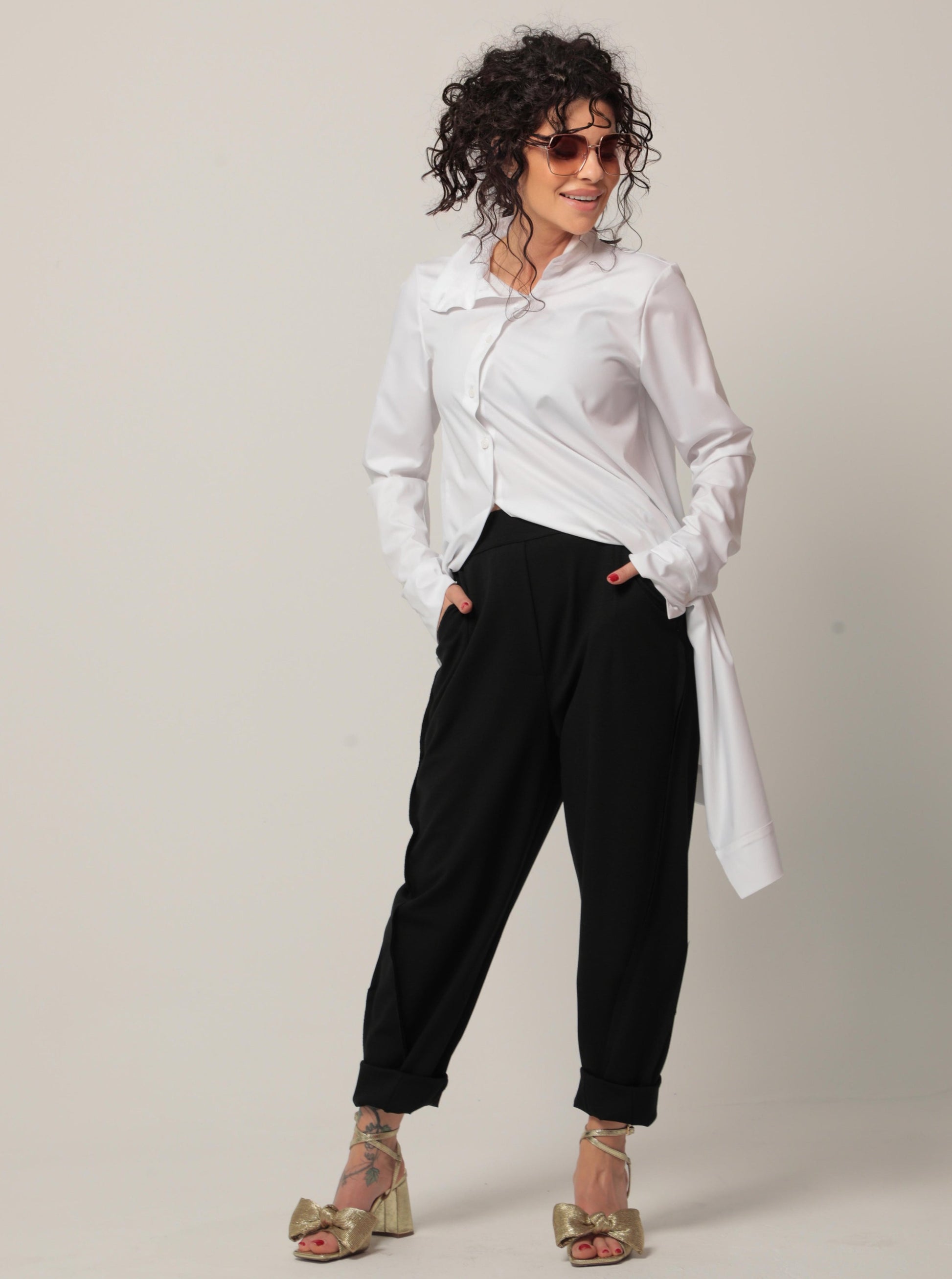 Introducing our Harper Pants, crafted from luxurious Milano Ponte fabric, renowned for its softness and durability. These pants feature a relaxed fit, providing both comfort and style. The unique design showcases asymmetric raw seams, adding a contemporary edge to the classic silhouette. Complete with an elasticated waistband at the back, ensuring a perfect fit for every body shape.