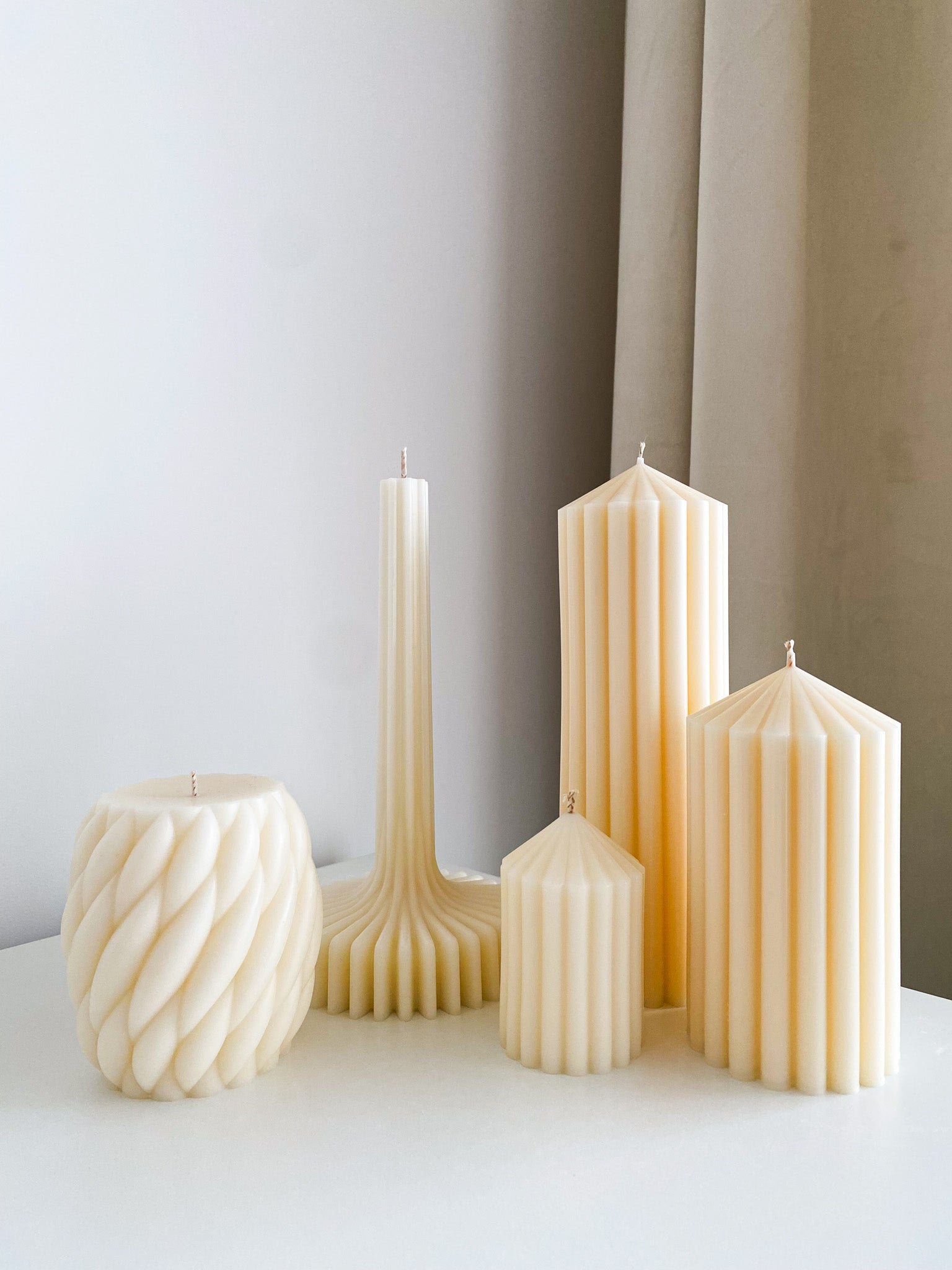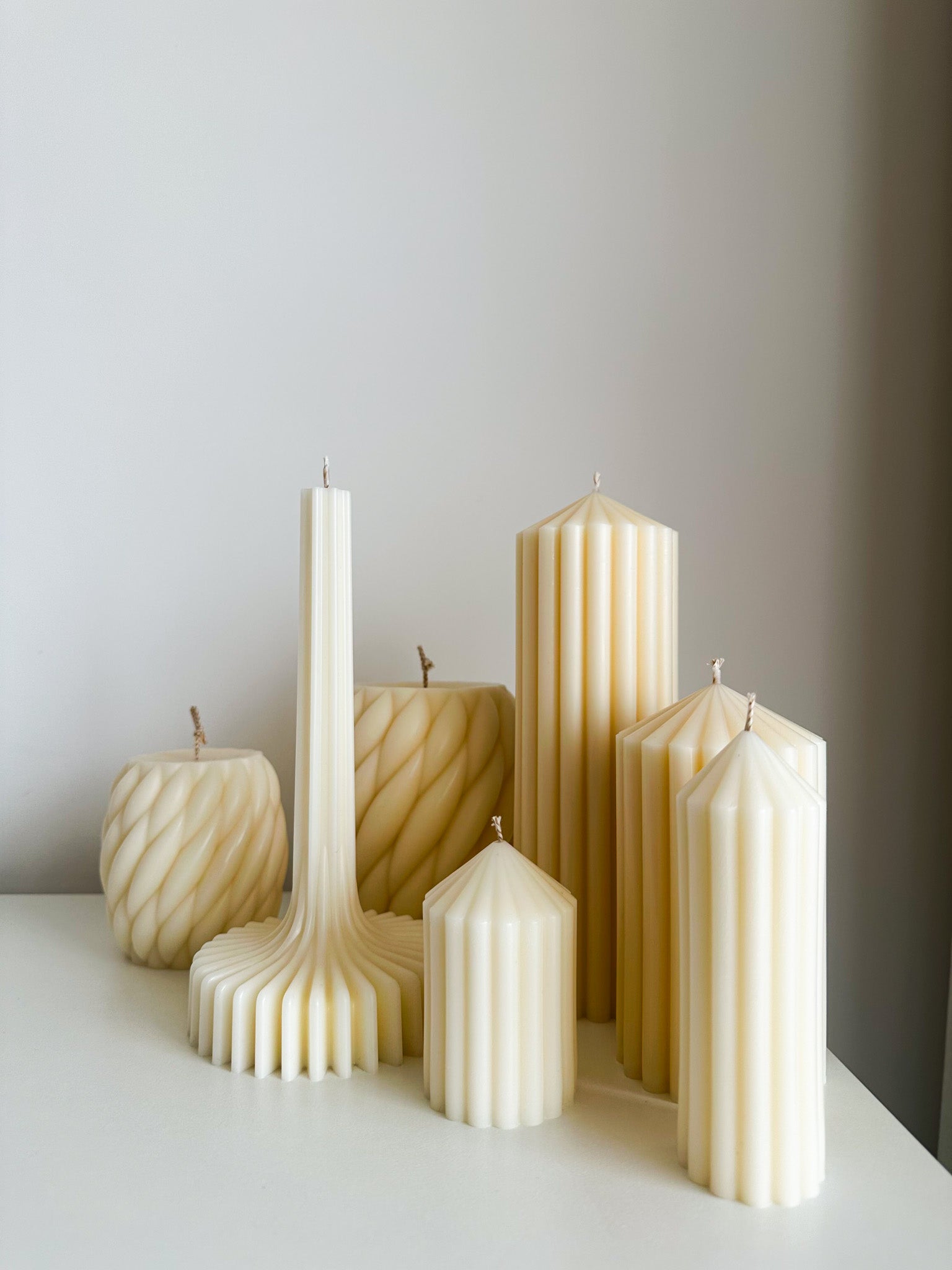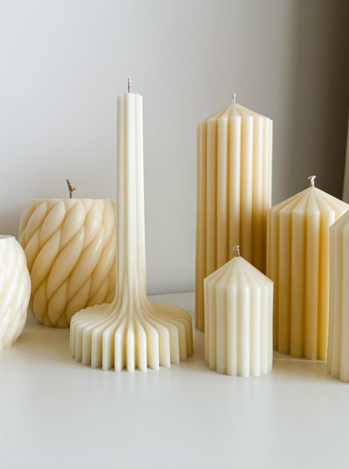 Illuminate your space with our Cylindrical Candles with Geometric Shapes. These uniquely designed candles feature intricate geometric shape, adding a modern touch to any room. Crafted with precision, they provide both aesthetic appeal and a calming ambiance.